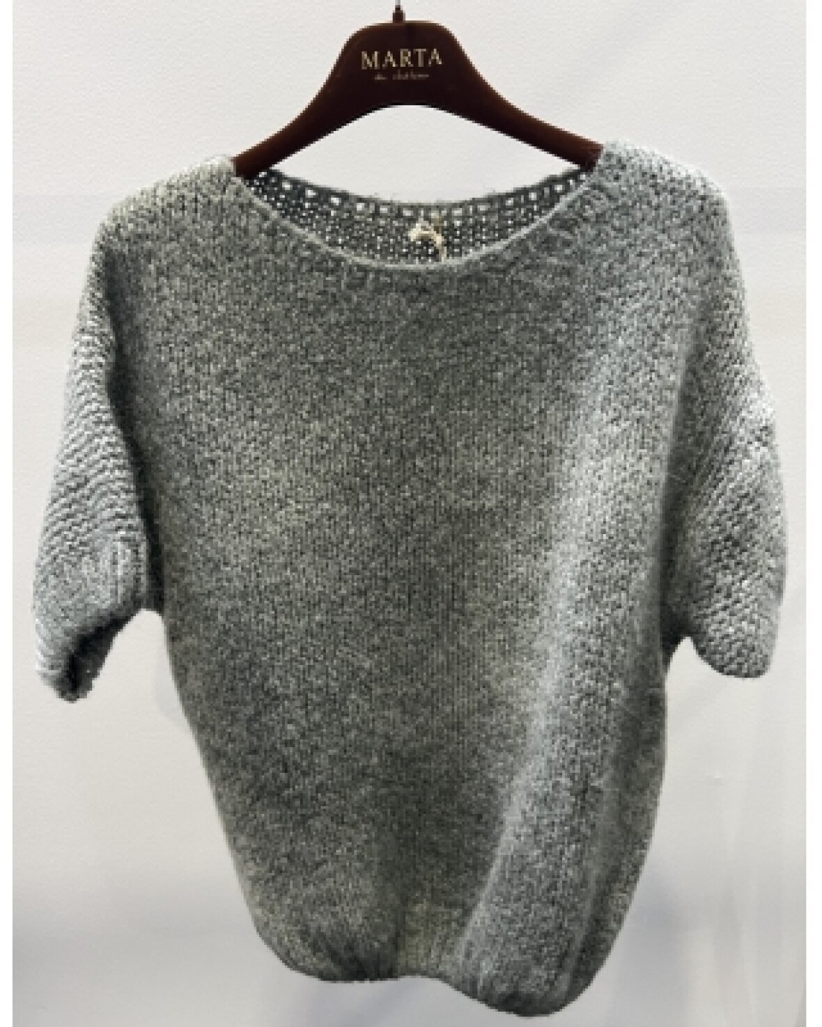 Strik 9008 fra Marta Du Chateau i kaki. Strikken har rund hals og korte ærmer. Strikken går let ind forneden.