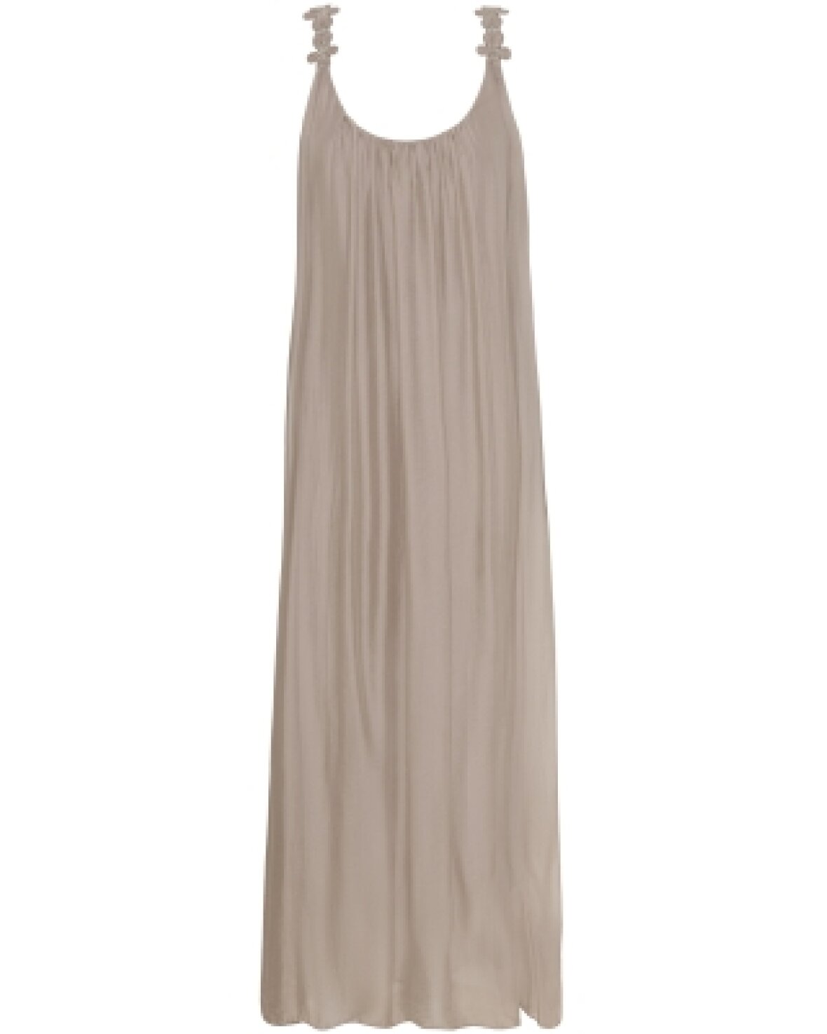 Kjole 65675 fra Marta Du Chateau i smuk sand/beige. Flotte blomster stropper og en kjole der falder smukt.