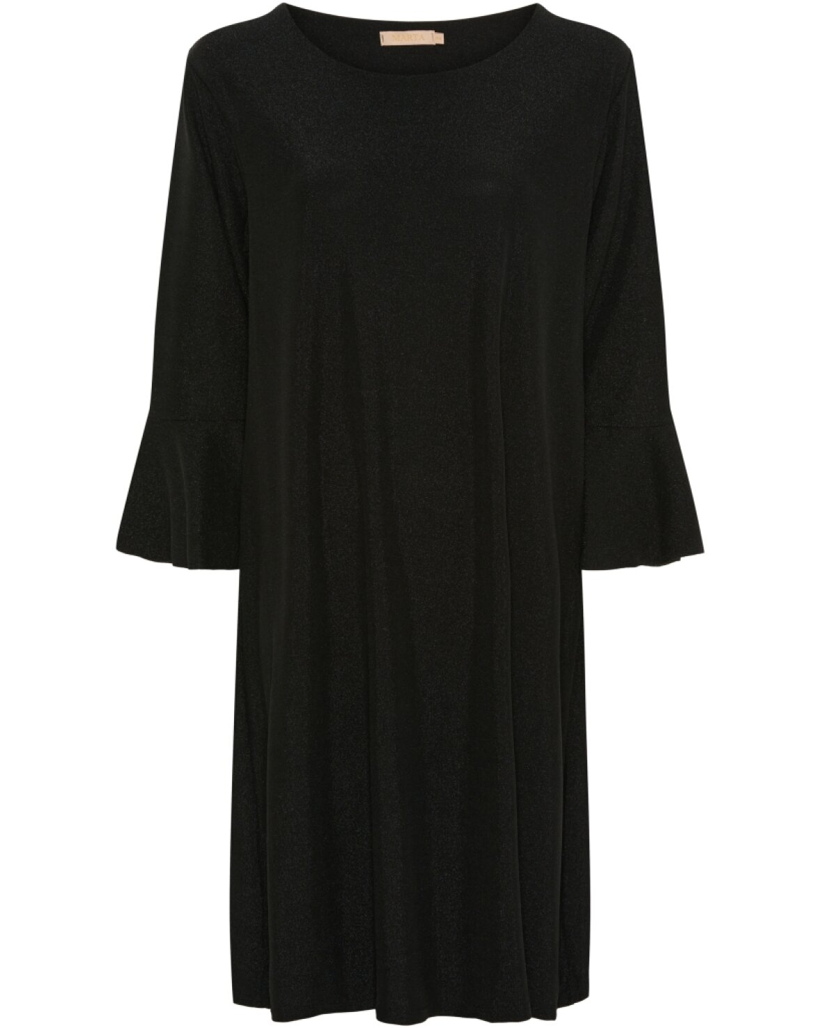 Kjole 6242 fra Marta Du Chateau i sort med let glimmer effekt. Skøn kjole med rund hals, 3/4 lange ærmer der slutter med vidde. Selv kjolen er i A facon og passer de fleste. Skøn og nem kjole til de kommende fester.