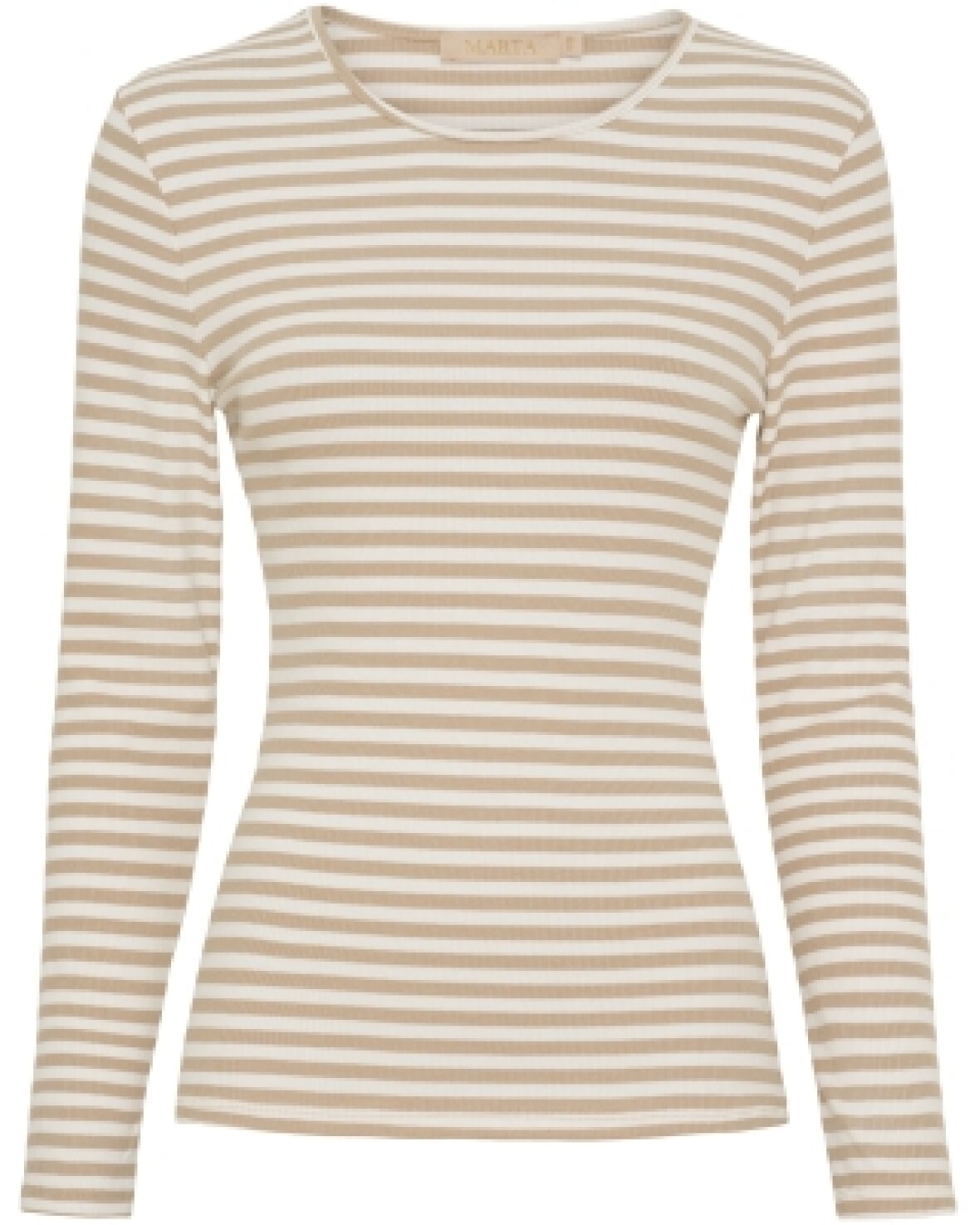 T-shirt 49066 fra Marta Du Chateau i beige/sand. Rund hals og lange ærmer. Skøn at have på. Brug den under din kjole, skjorte eller strik for det ekstra smarte lag.