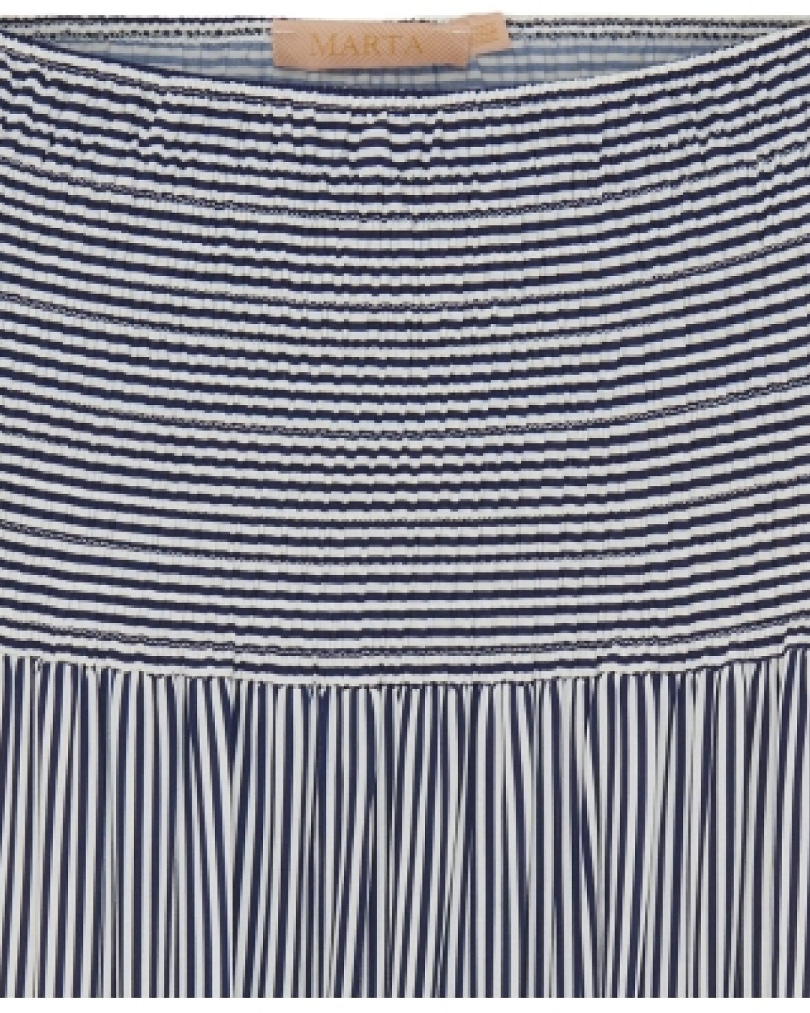 Nederdel 5201 fra Marta Du Chateau i klassisk navy/hvid striber. Nederdelen har 20 cm smock øverst og ellers falder nederdelen bare smukt og flot på.