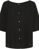 Bluse 83428 fra Marta Du Chateau i sort. Skøn hør bluse med rund hals, fint ærme og skøn knap detalje bagpå. Kortere foran end bagpå.