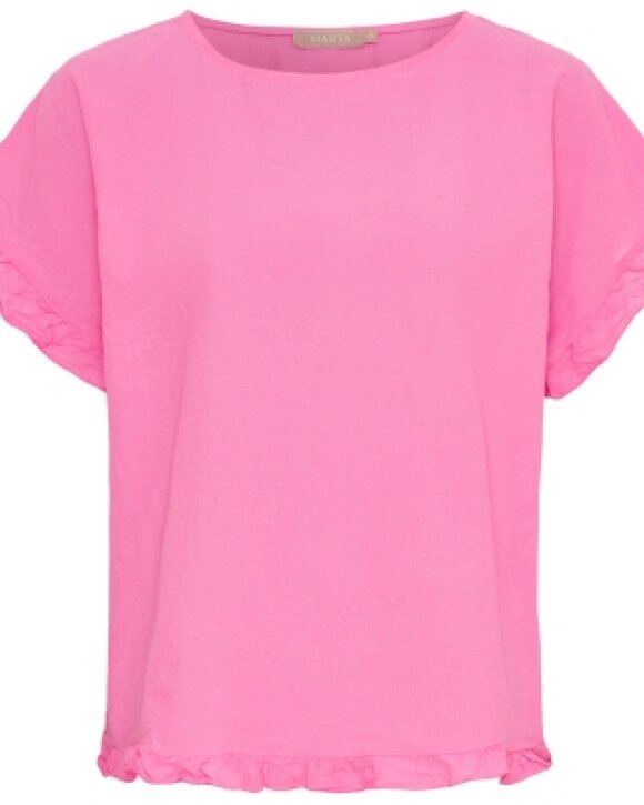 Top 86493 fra Marta Du Chateau i fuxia. Skøn og nem top med rund hals, kort ærme med flæse og lille fin flæse detalje forneden. Nem top der passer til det hele.