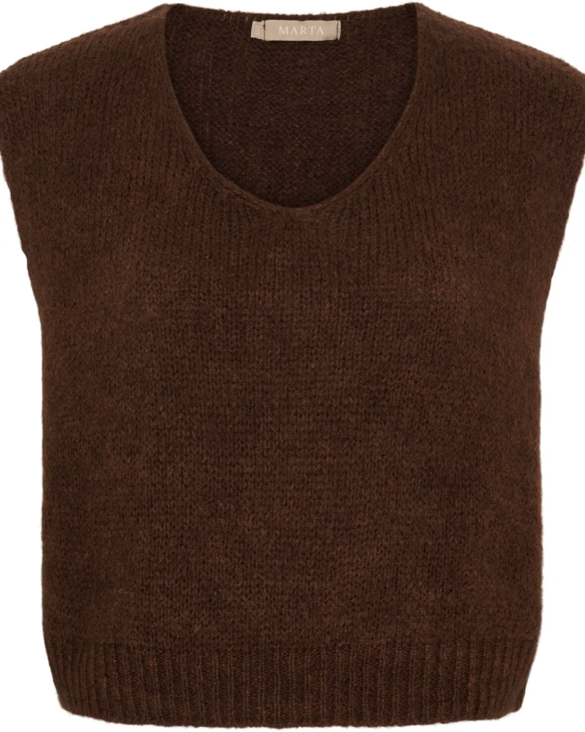 Vest 5114 fra Marta Du Chateau i choko. Lækker vest lige til at putte over det meste. Kort model med v-udskæring.