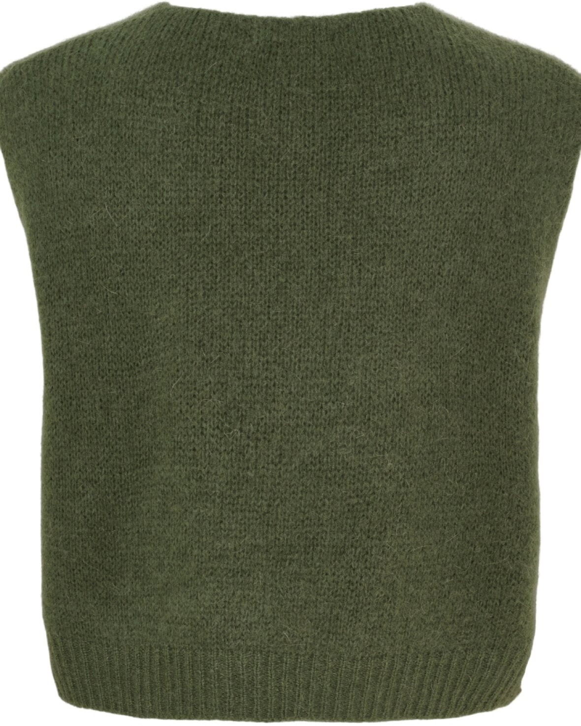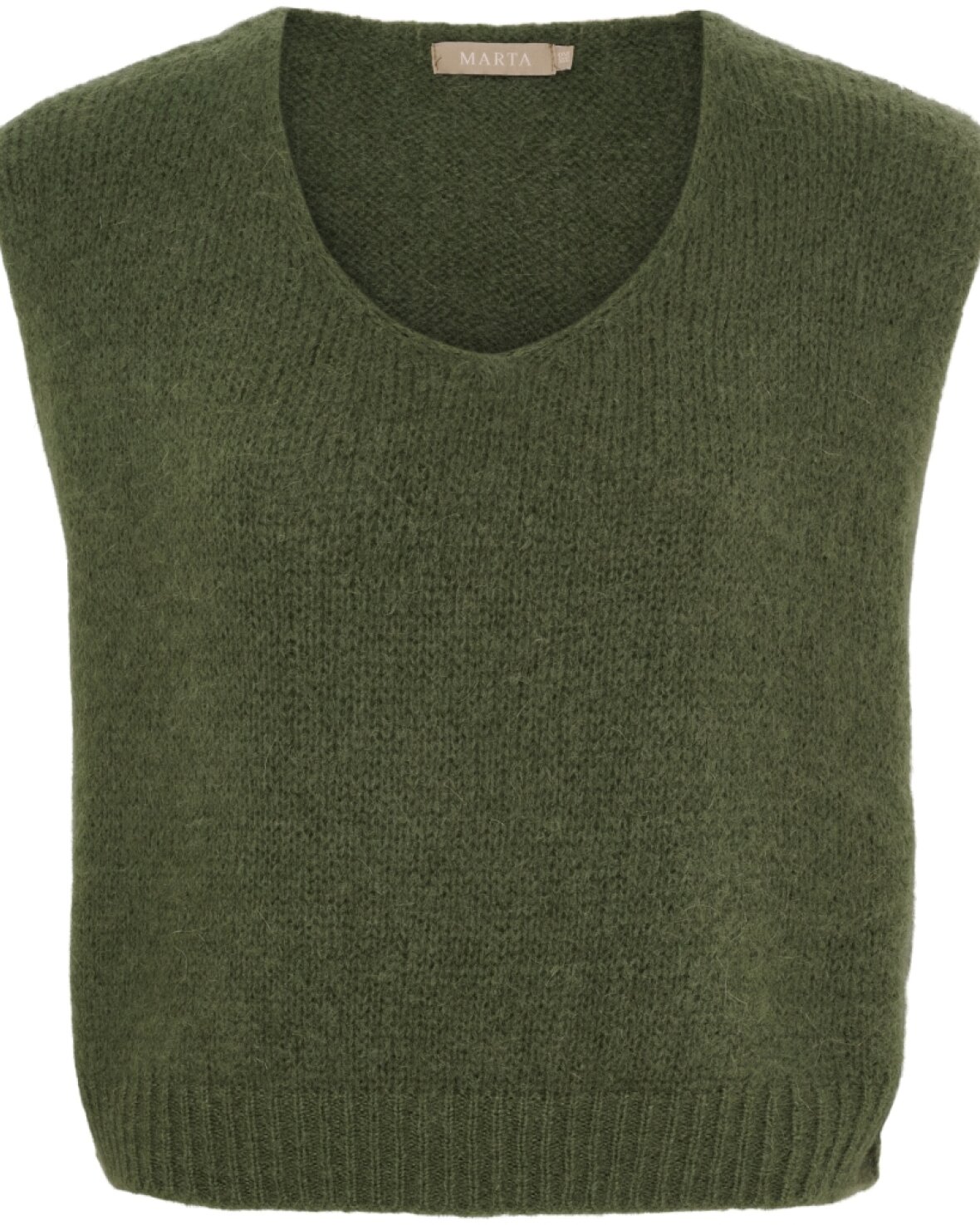 Vest 5114 fra Marta Du Chateau i grøn. Lækker vest lige til at putte over det meste. Kort model med v-udskæring.