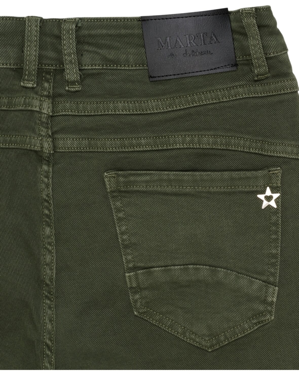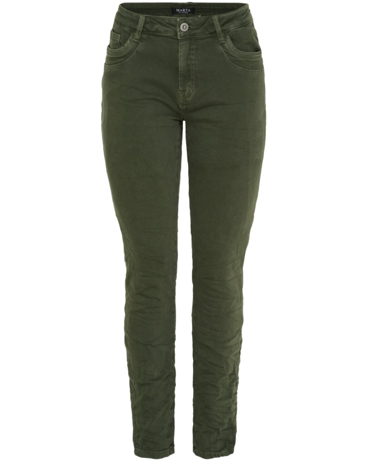 Jeans 229-8711 fra Marta Du Chateau i grøn. Klassisk jeans med smalle ben, medium højde på taljen. Lukkes med knap og lynlås. Meget lækker og blød at have på.