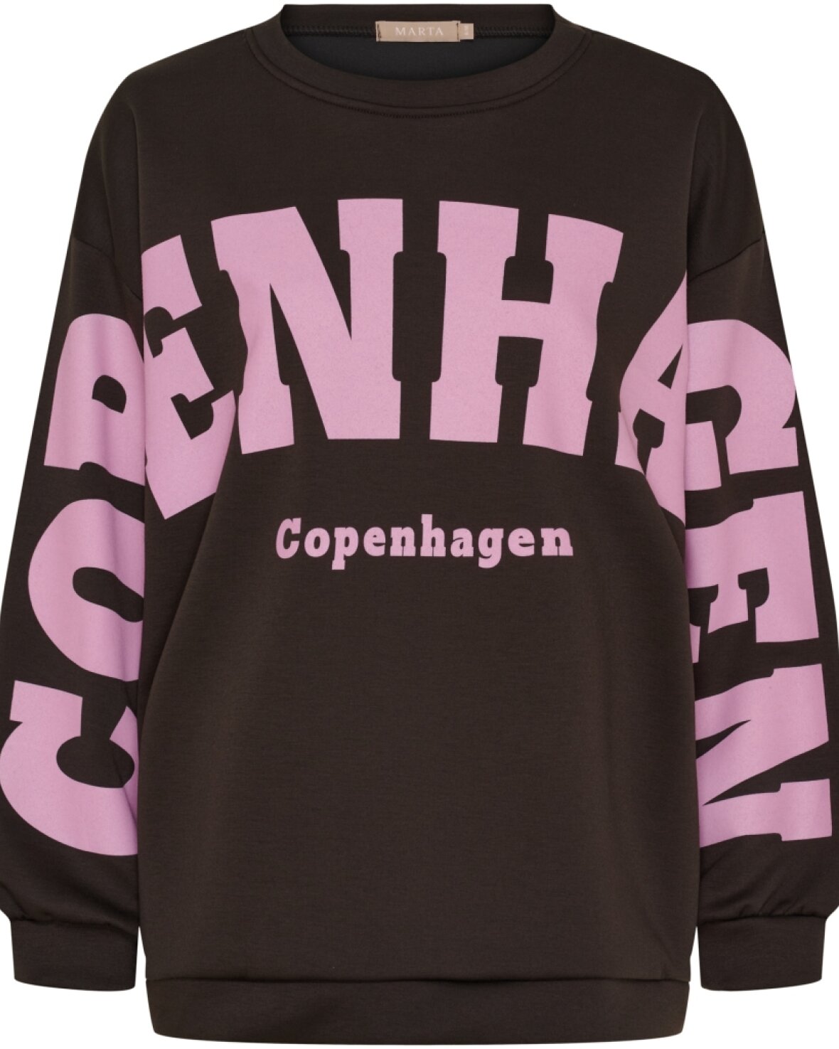 Sweatshirt 22659 fra Marta Du Chateau i brun. Blød og lækker sweatshirt med smart COPENHAGEN skrevet henover bryst og arme. Let oversize i størrelsen.