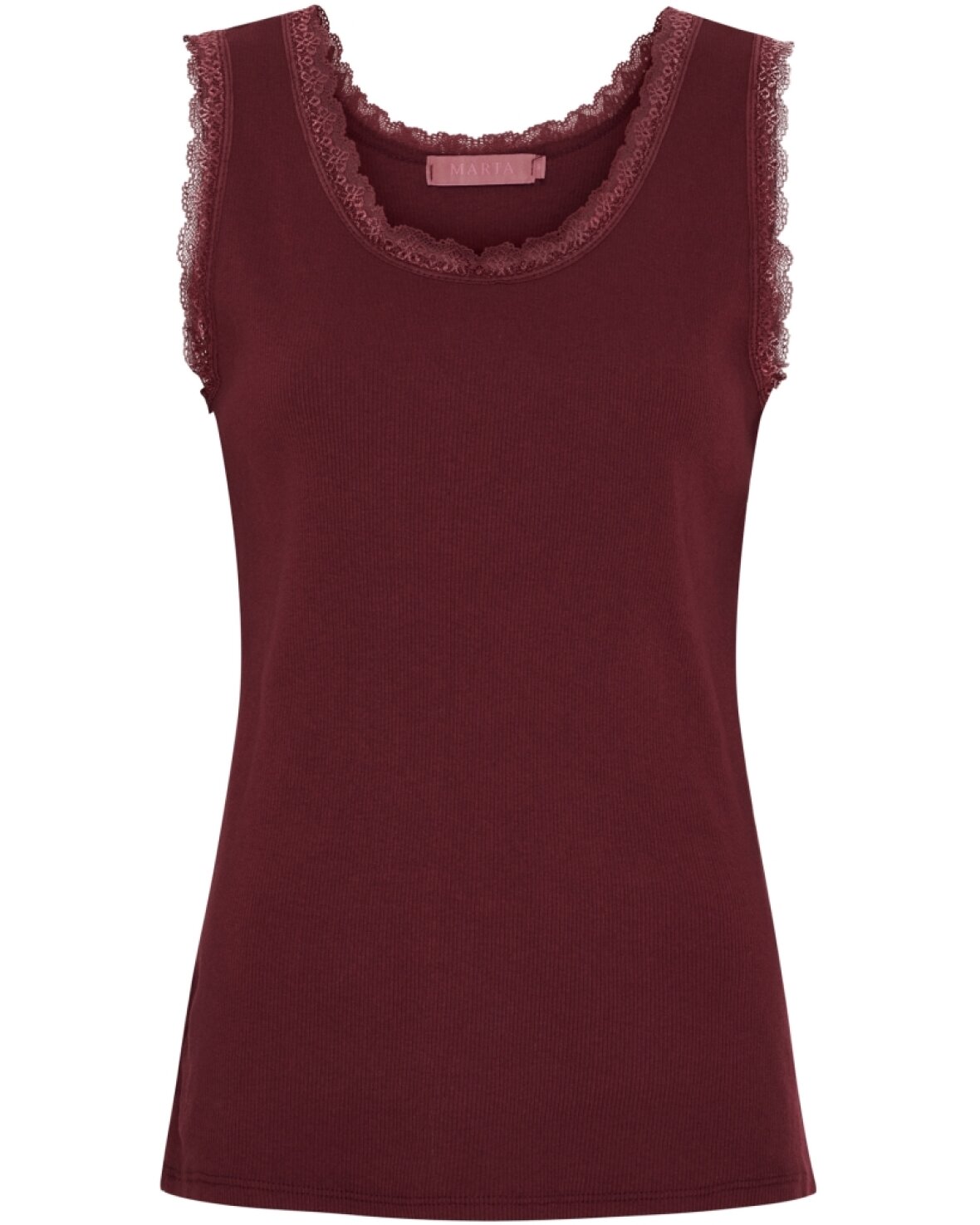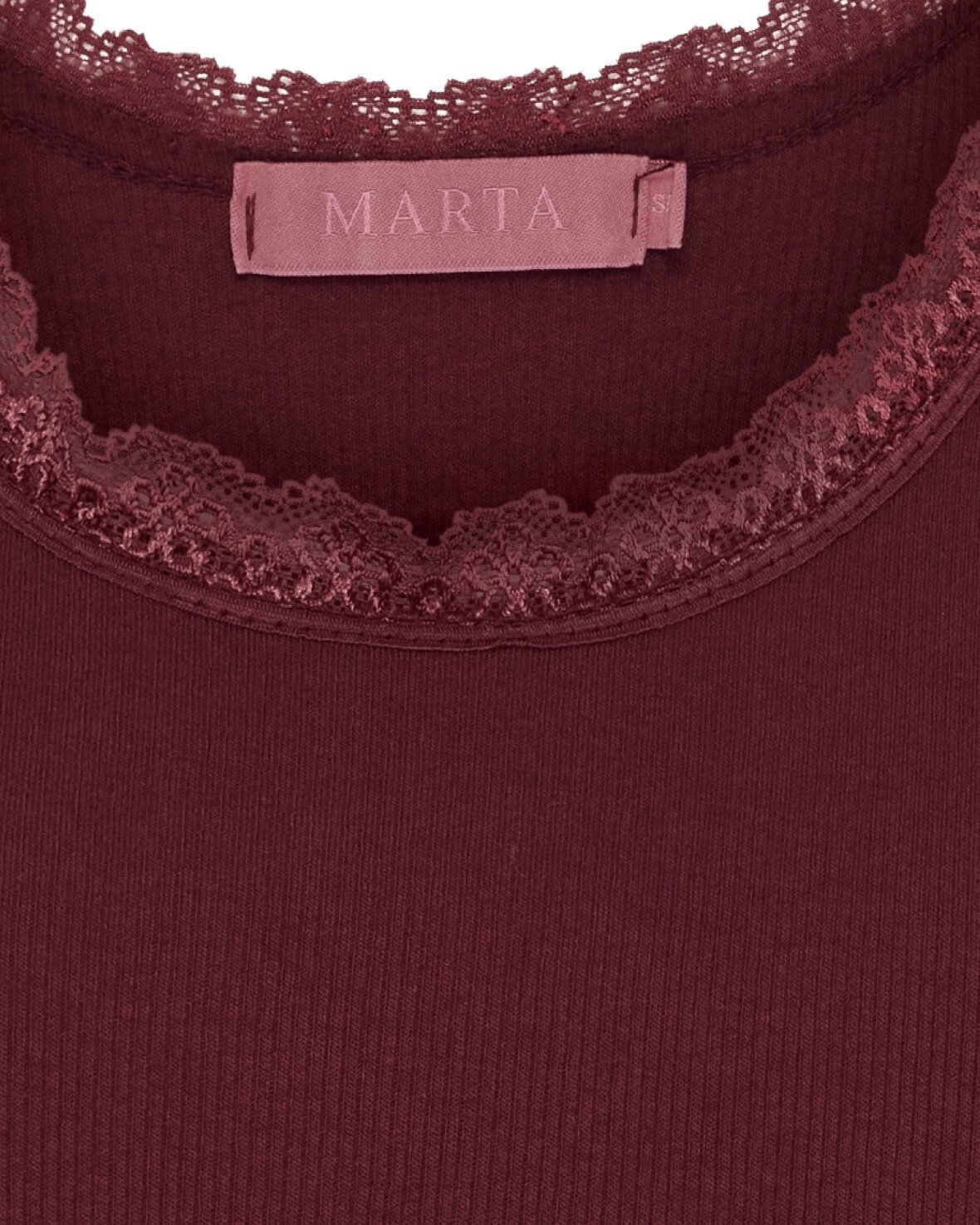 Top 2499 fra Marta Du Chateau i bordeaux. Skøn top med blonde kant. Lækker og fleksibel.
