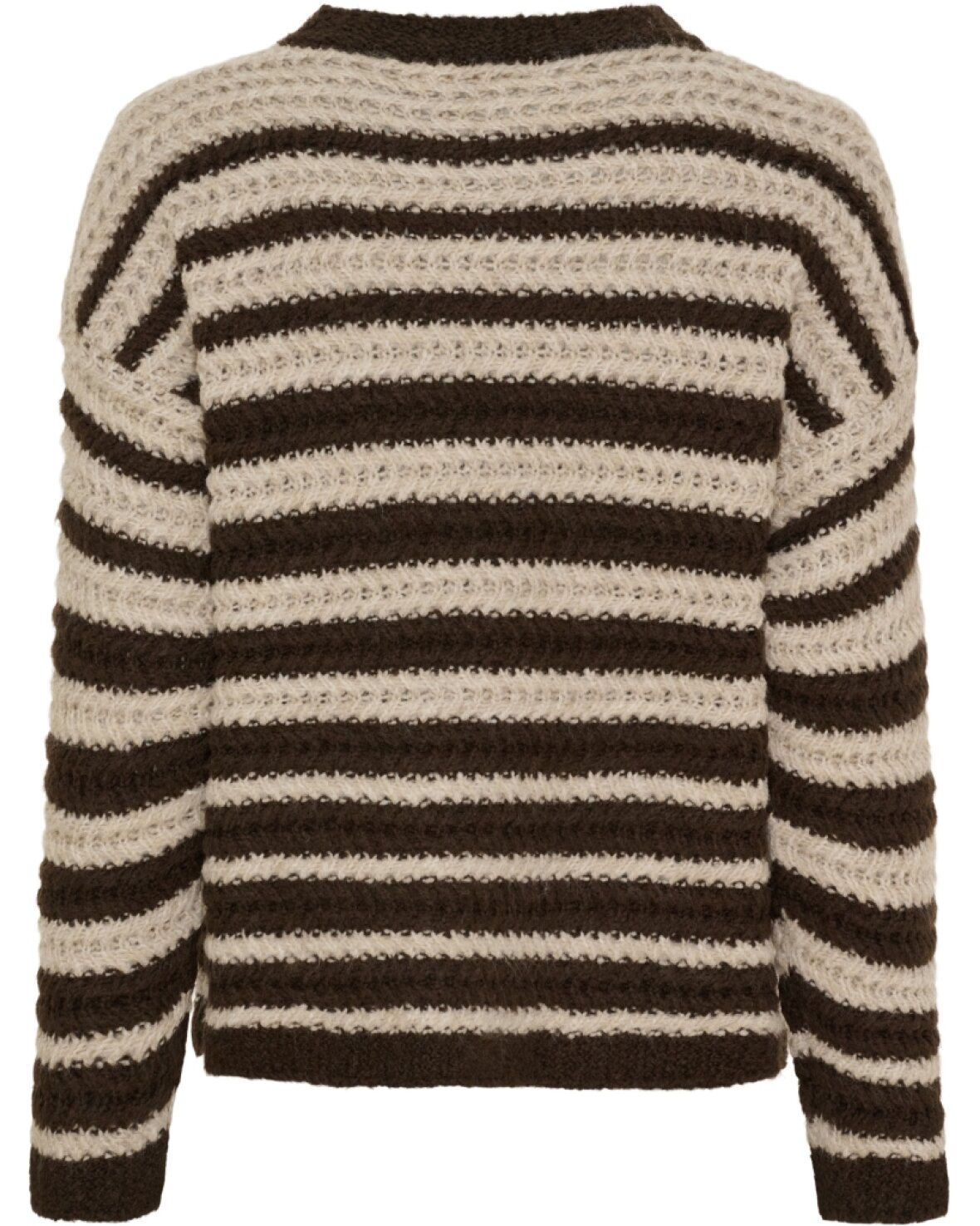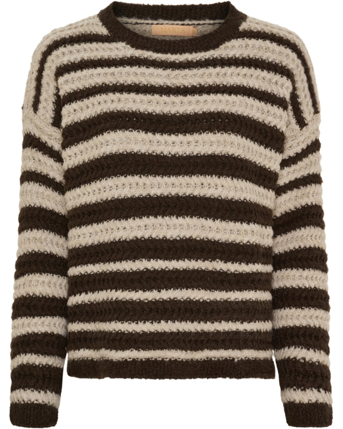 Strik 25484 fra Marta Du Chateau i brun/beige. Skønneste strik i brune efterårsfarver. Den har rund hals, lange ærmer og sidder bare godt.
