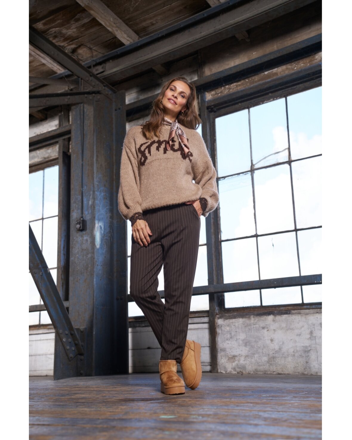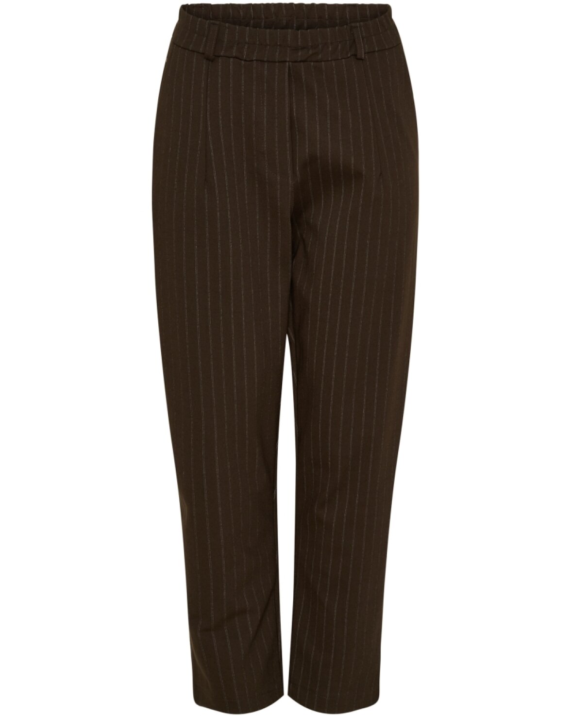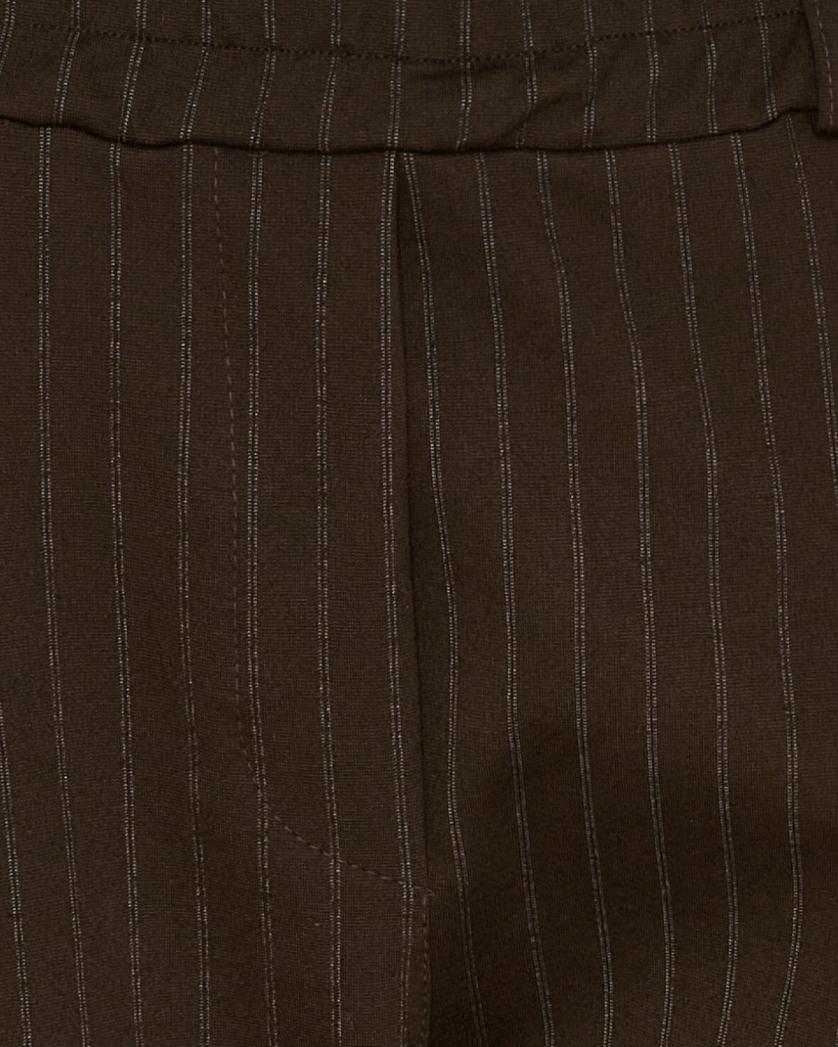 Buks 256423 fra Marta Du Chateau i brun med nålestrib. Skøn buks med elastik i livet, bæltestropper og skrålommer.