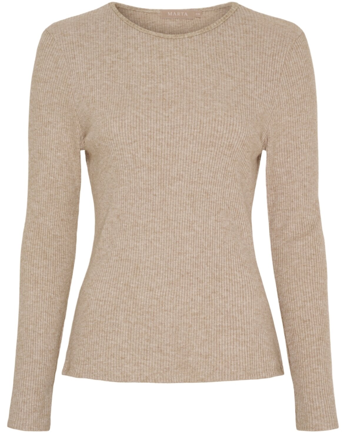 T-shirt 38915 fra Marta Du Chateau i camel. Lækker basis t-shirt med lange ærmer og let glimmer effekt.