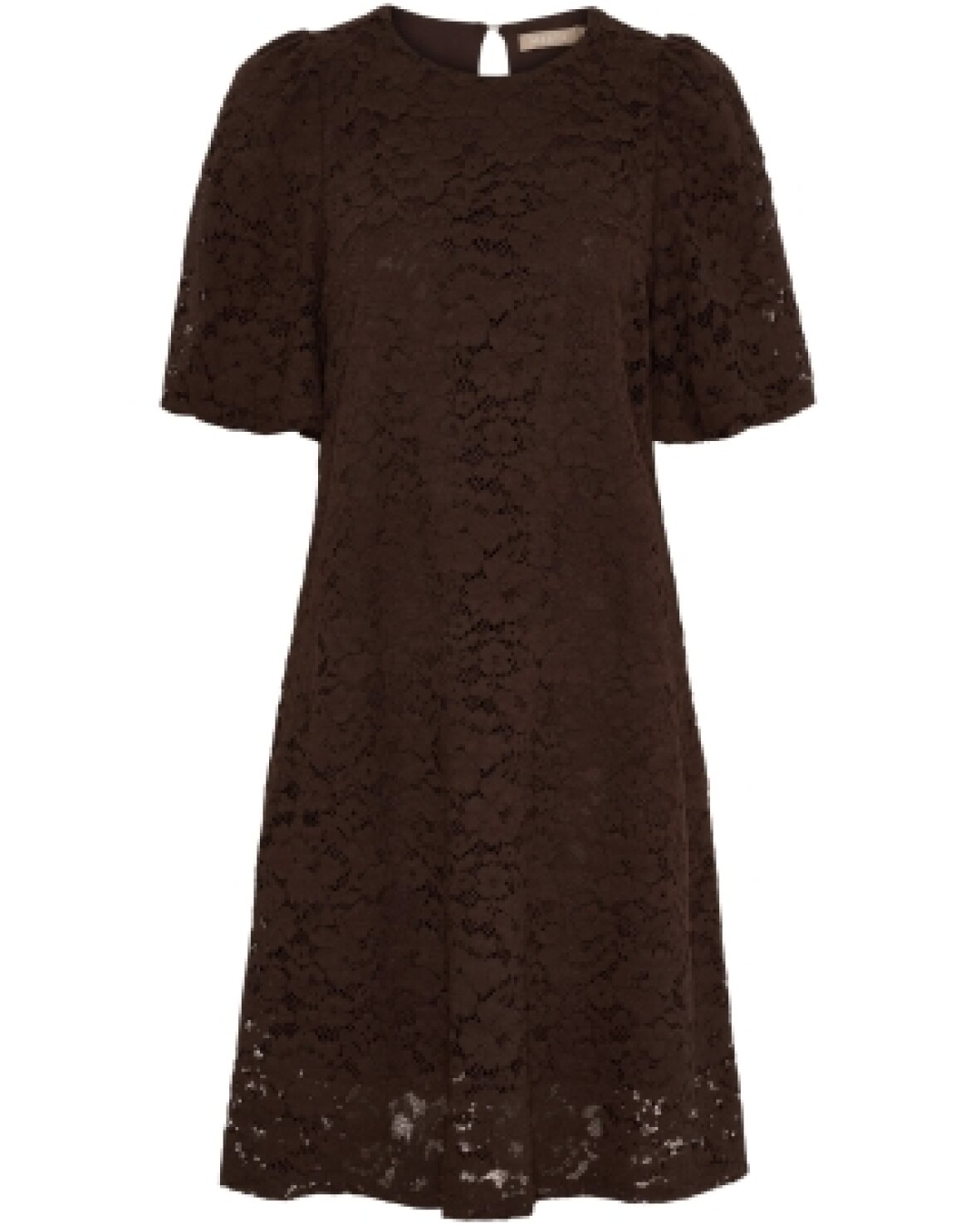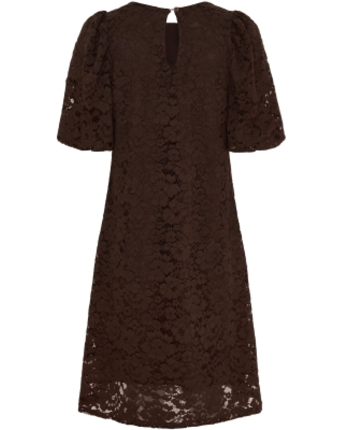 Kjole 59373 fra Marta Du Chateau i brun. Smuk blonde kjole med rund hals, fint ærme med let balloneffekt. Kjolen går ca. ned til knæet.