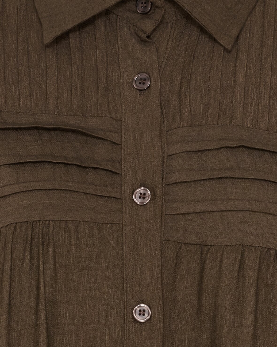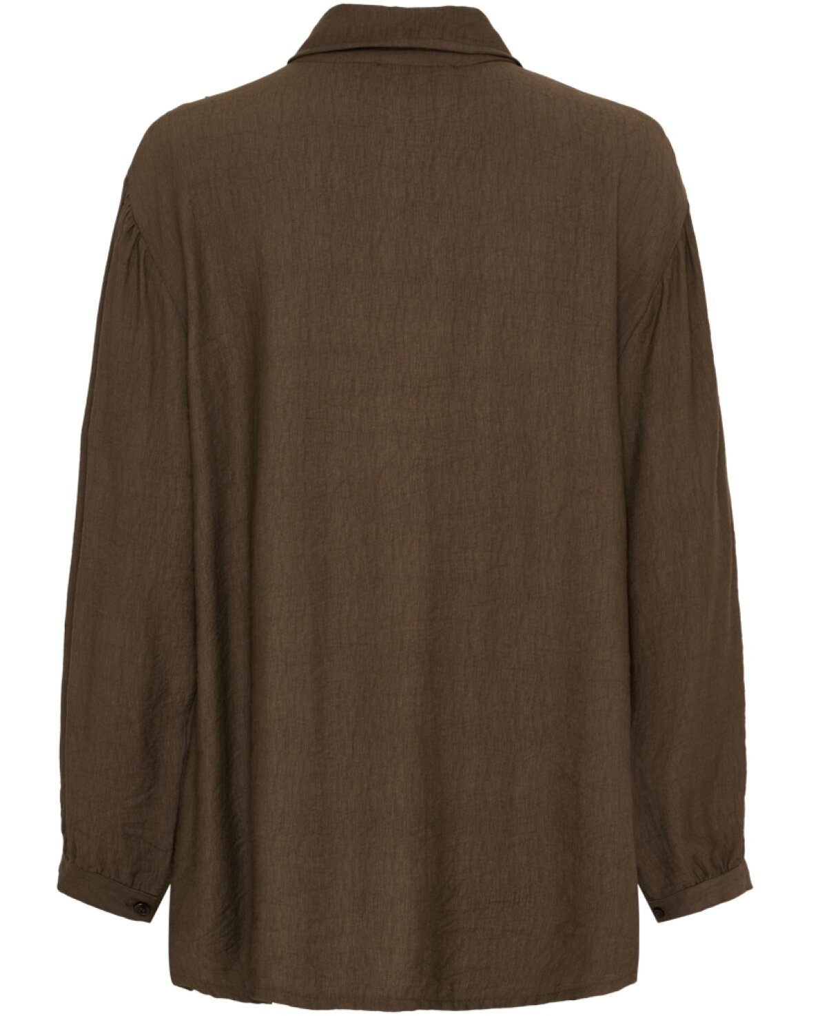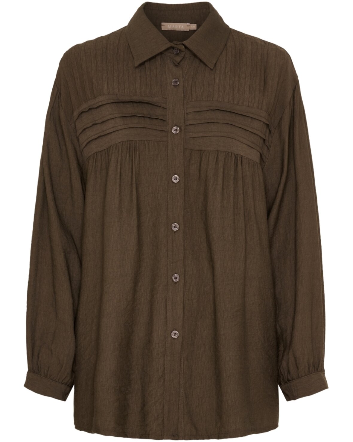 Skjorte 7546 fra Marta Du Chateau i brun. Skøn skjorte med mere længde, klassisk krave, gennemknappet og masser af fine detaljer.