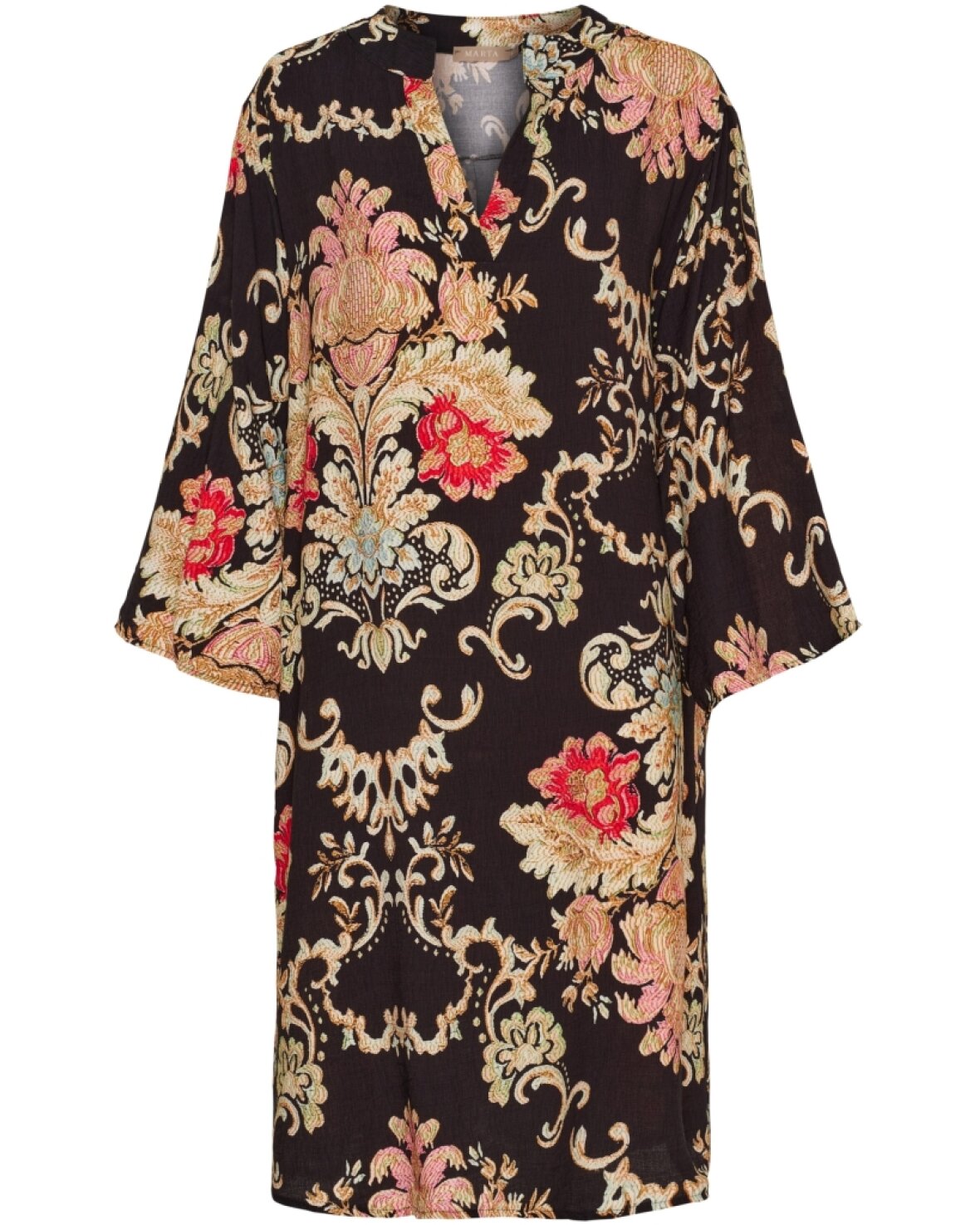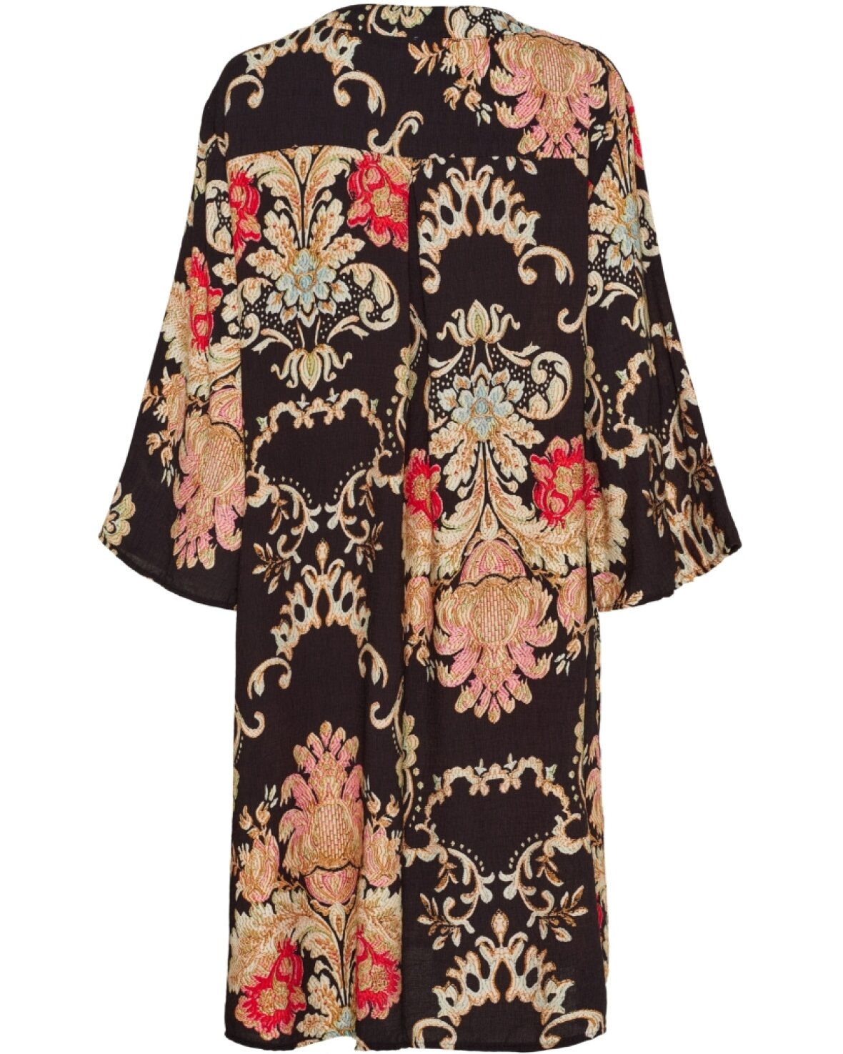 Kjole 7678 fra Marta Du Chateau i sort med et lækkert mønster. Kjolen har v-udskæring, er rummelig og ærmer med vidde.
