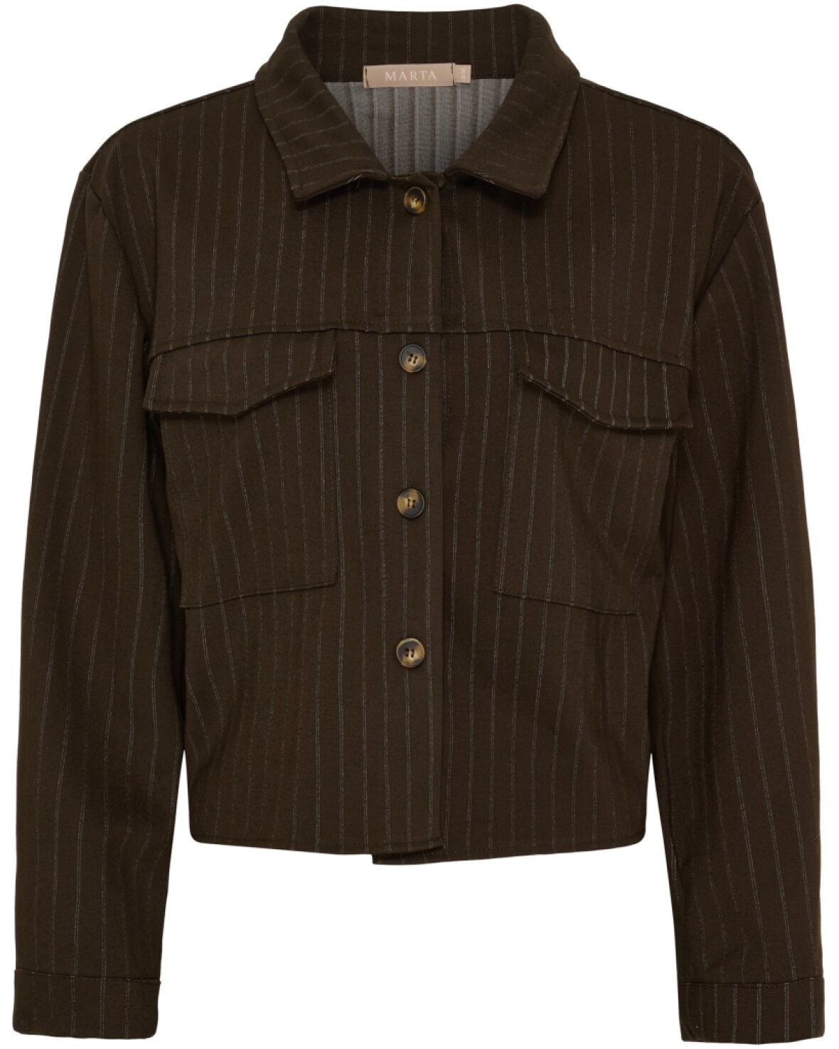 Jakke 83769 fra Marta Du Chateau i brun. Skøn kort jakke med klassisk krave, lange ærmer og knaplukning ned foran. Desuden lommer på brystet.