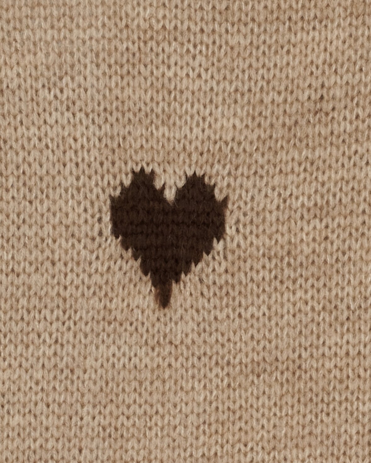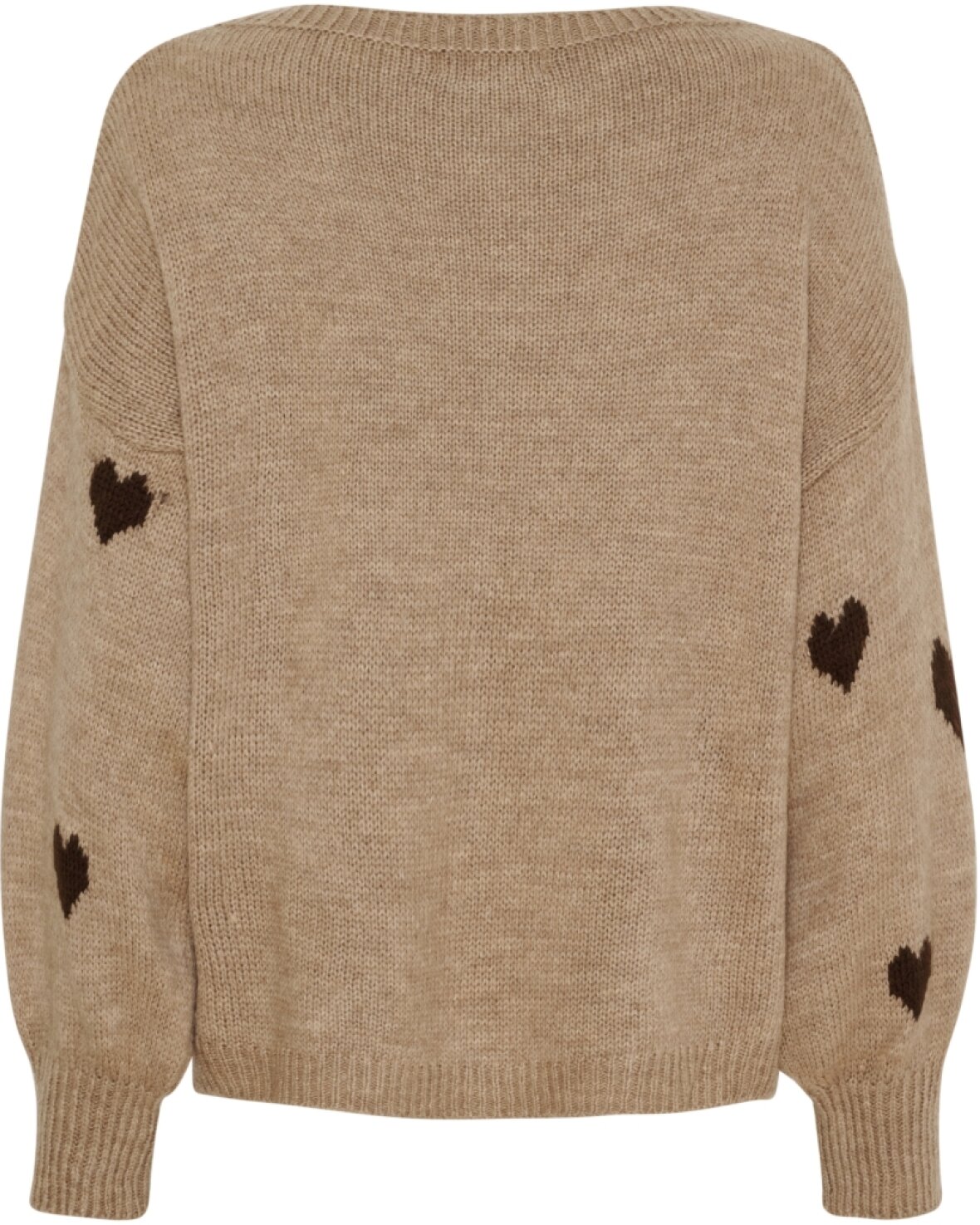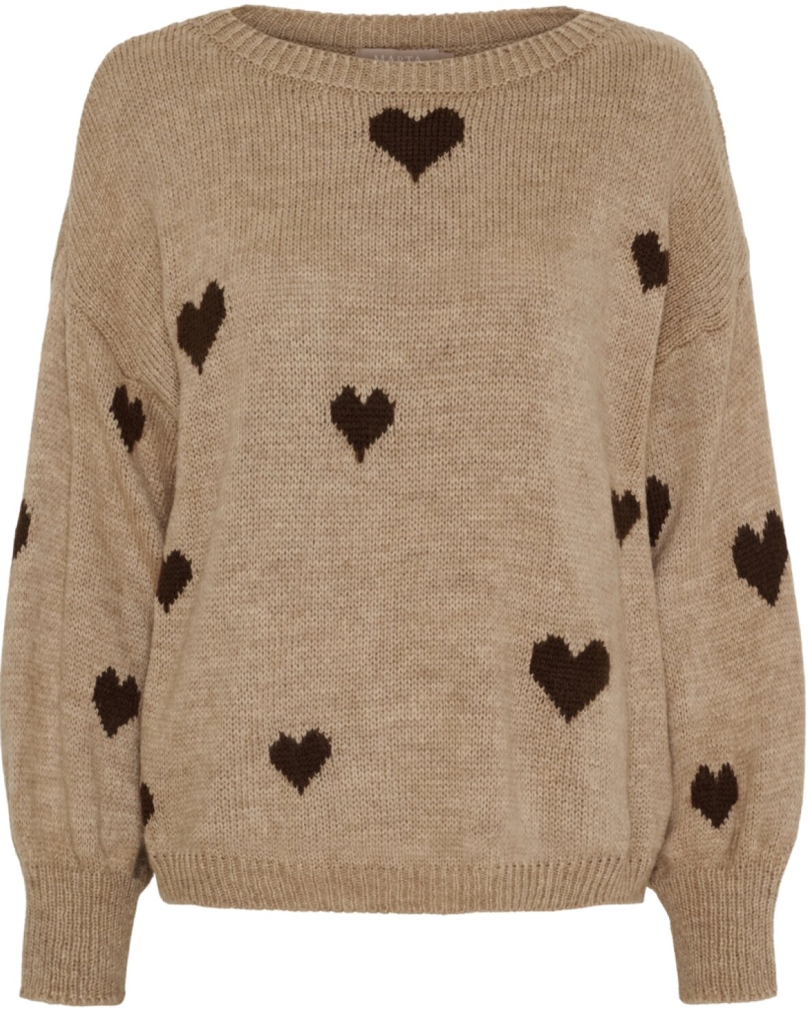Strik 9582 fra Marta Du Chateau i fango med brune hjerter. Skøn strik med rund hals, lange ærmer og lækker pasform.