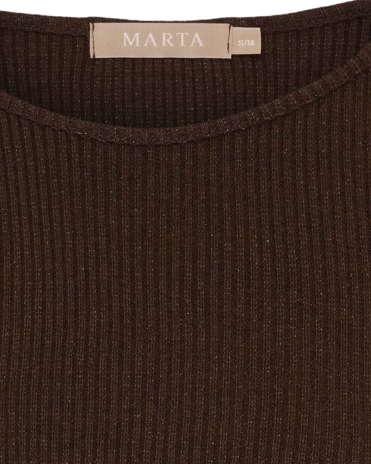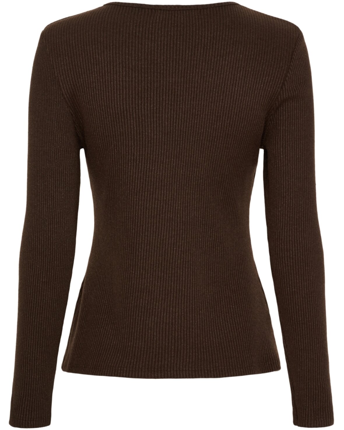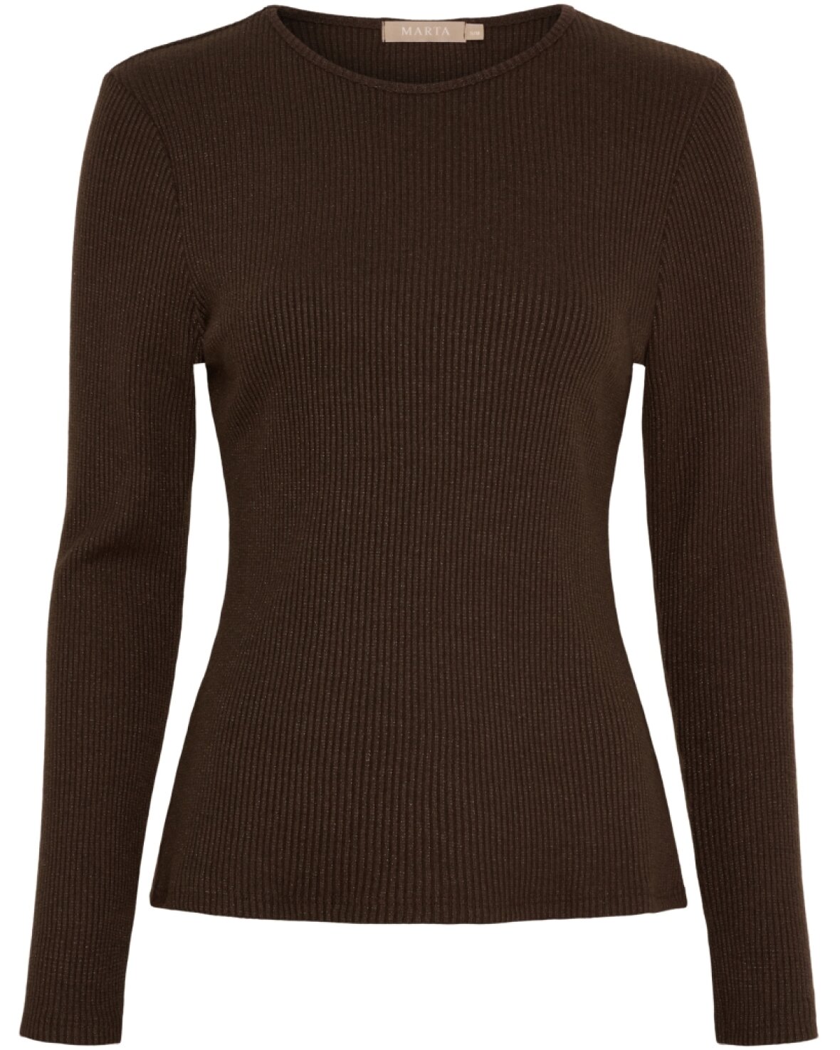 T-shirt 38915 fra Marta Du Chateau i mørkebrun. Lækker basis t-shirt med lange ærmer og let glimmer effekt.