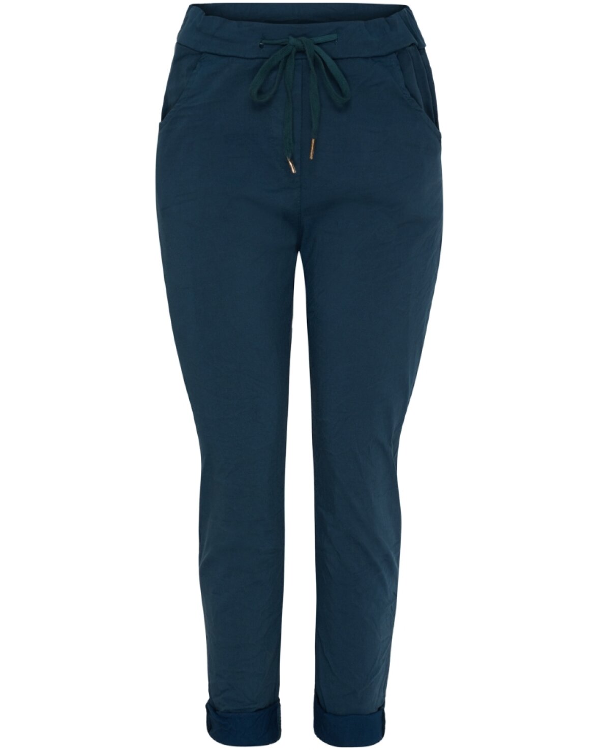 Buks 68702 fra Marta Du Chateau i petrolio. Lækker og blød buks med masser af stretch. Buksen har blød linning og bindes med snøre, skrålommer og er bare dejlig at have på.
