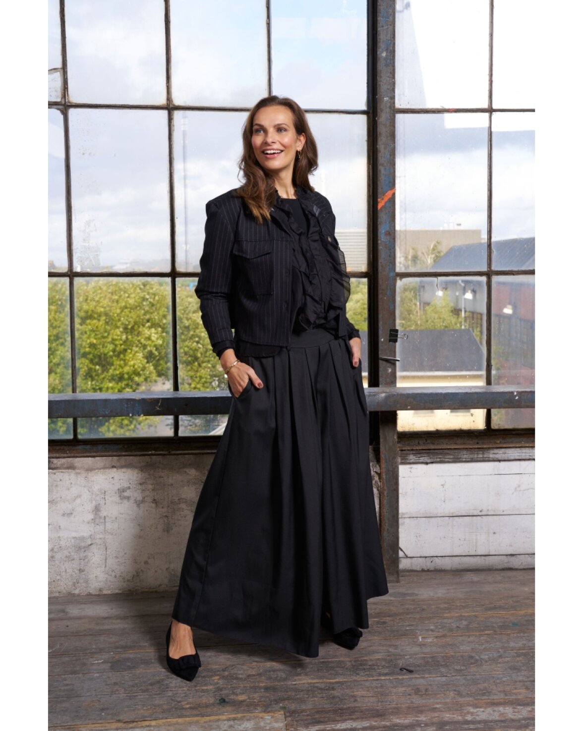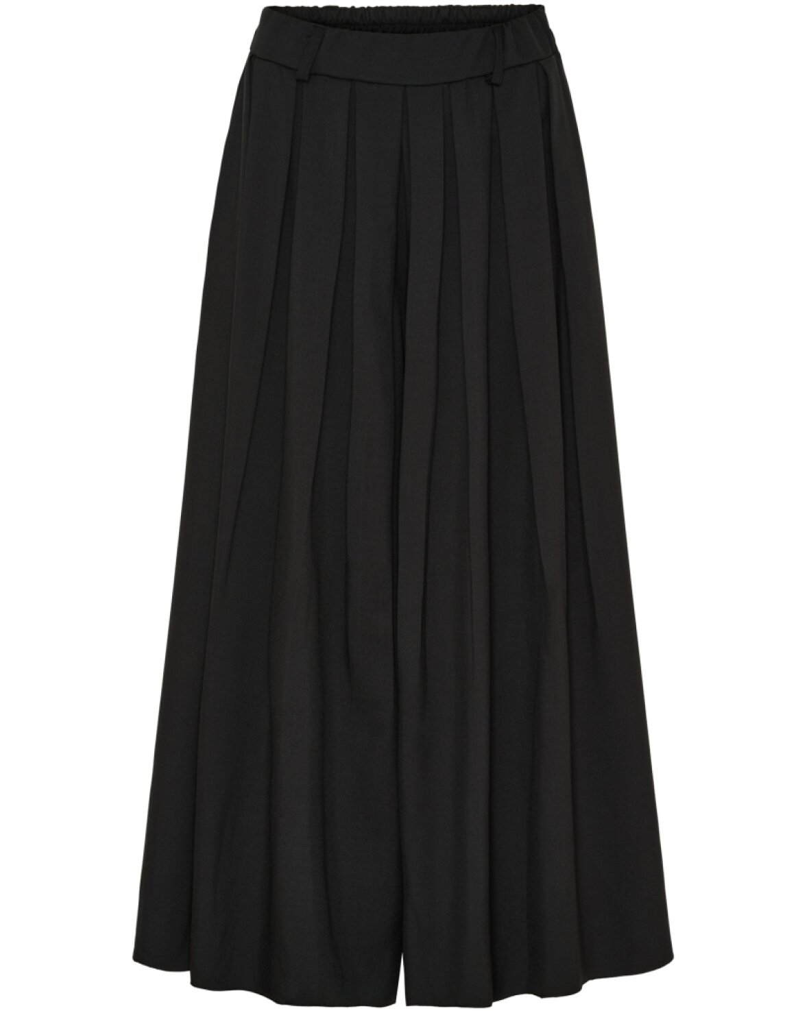 Buks 246424 fra Marta Du Chateau i sort. Smart buksenederdel med fast linning foran og elastik bagpå. Buksen har læg foran som giver den fine effekt. Der er desuden skrålommer i modellen.