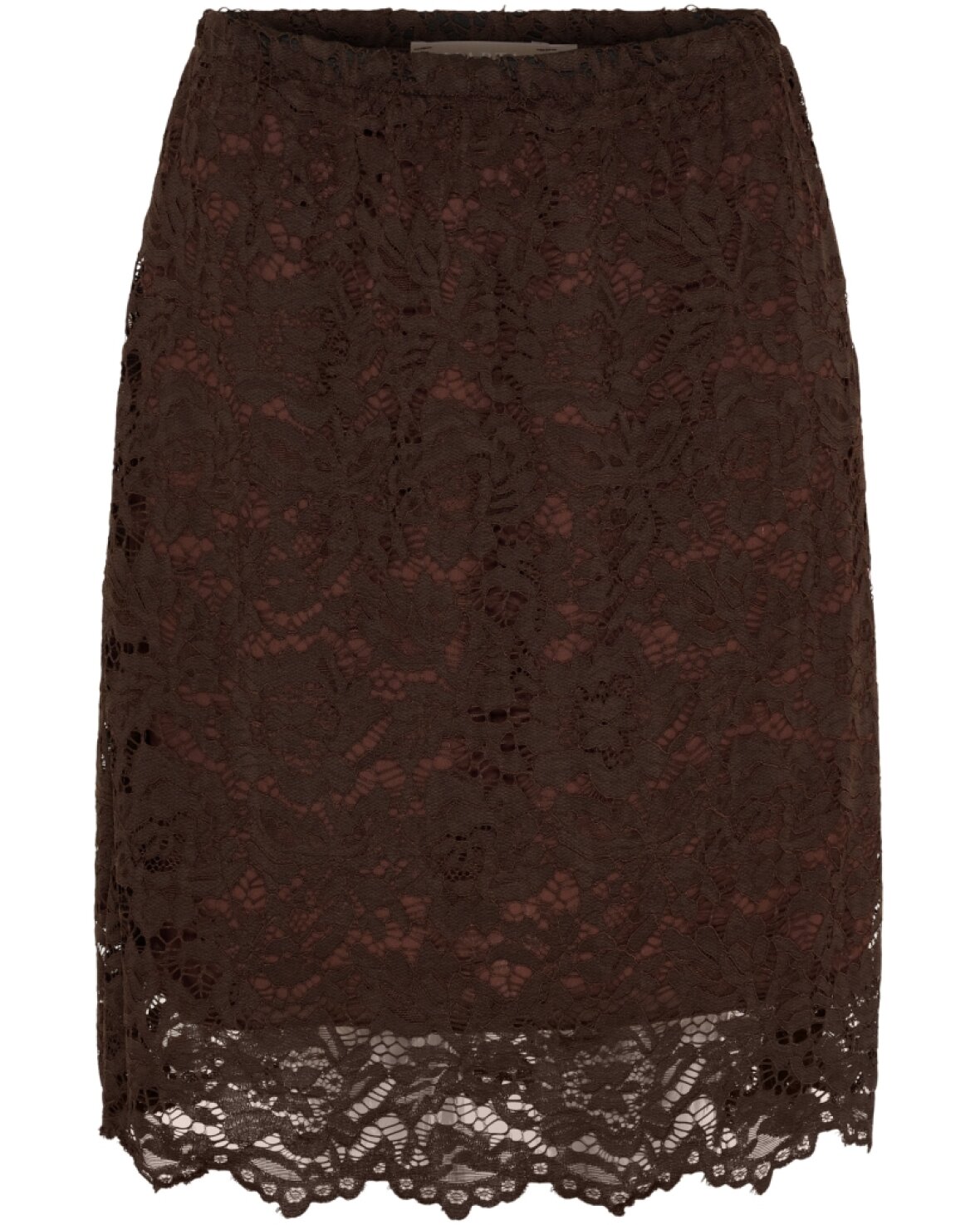 Nederdel 7653 fra Marta Du Chateau i brun. Smuk blonde nederdel med elastik i taljen og en fin længde til lige over knæet. Nederdelen har underskirt.