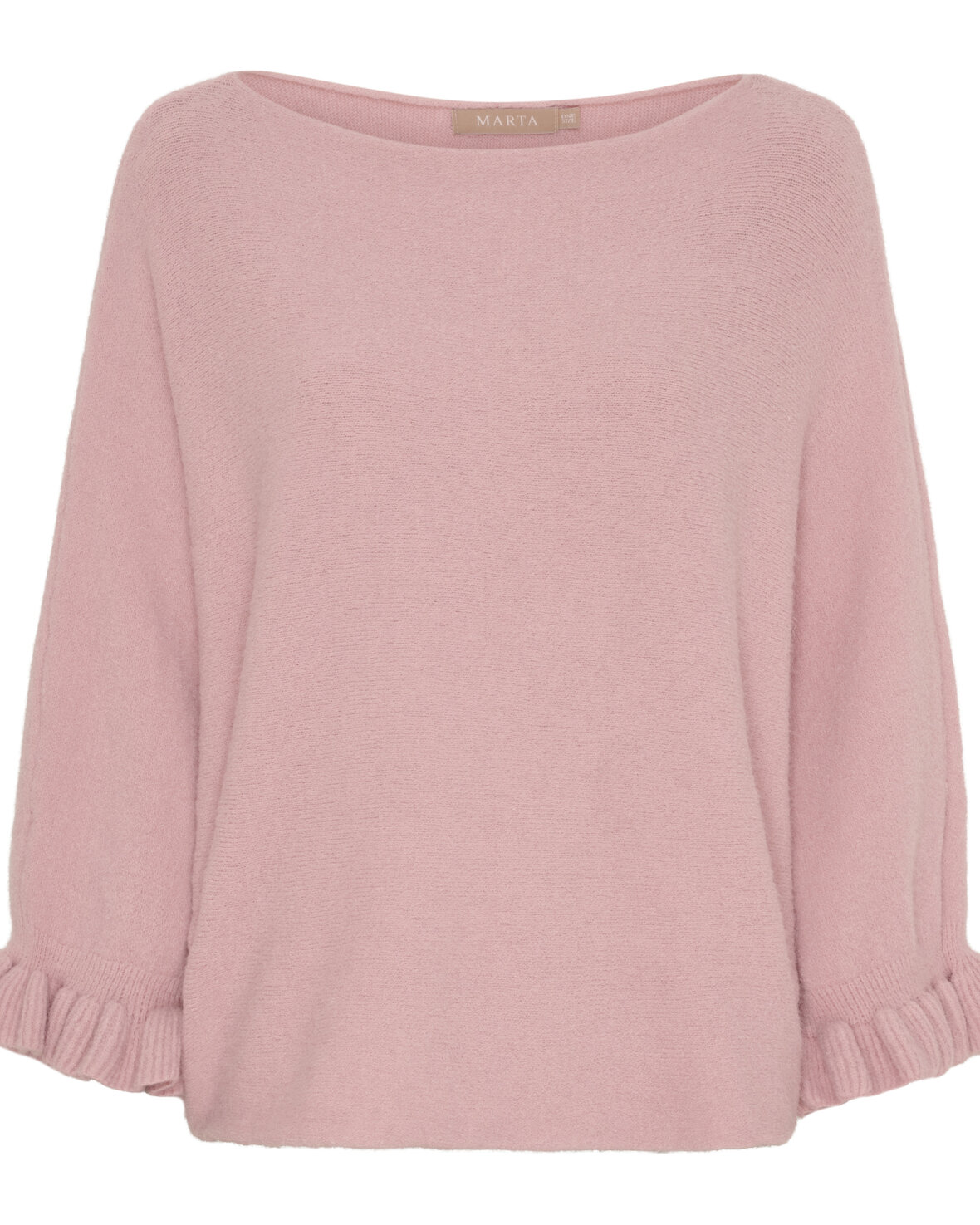 Strik 30003 fra Marta Du Chateau i gammel rosa, med fint lille 3/4 langt ærme og flæse detalje.