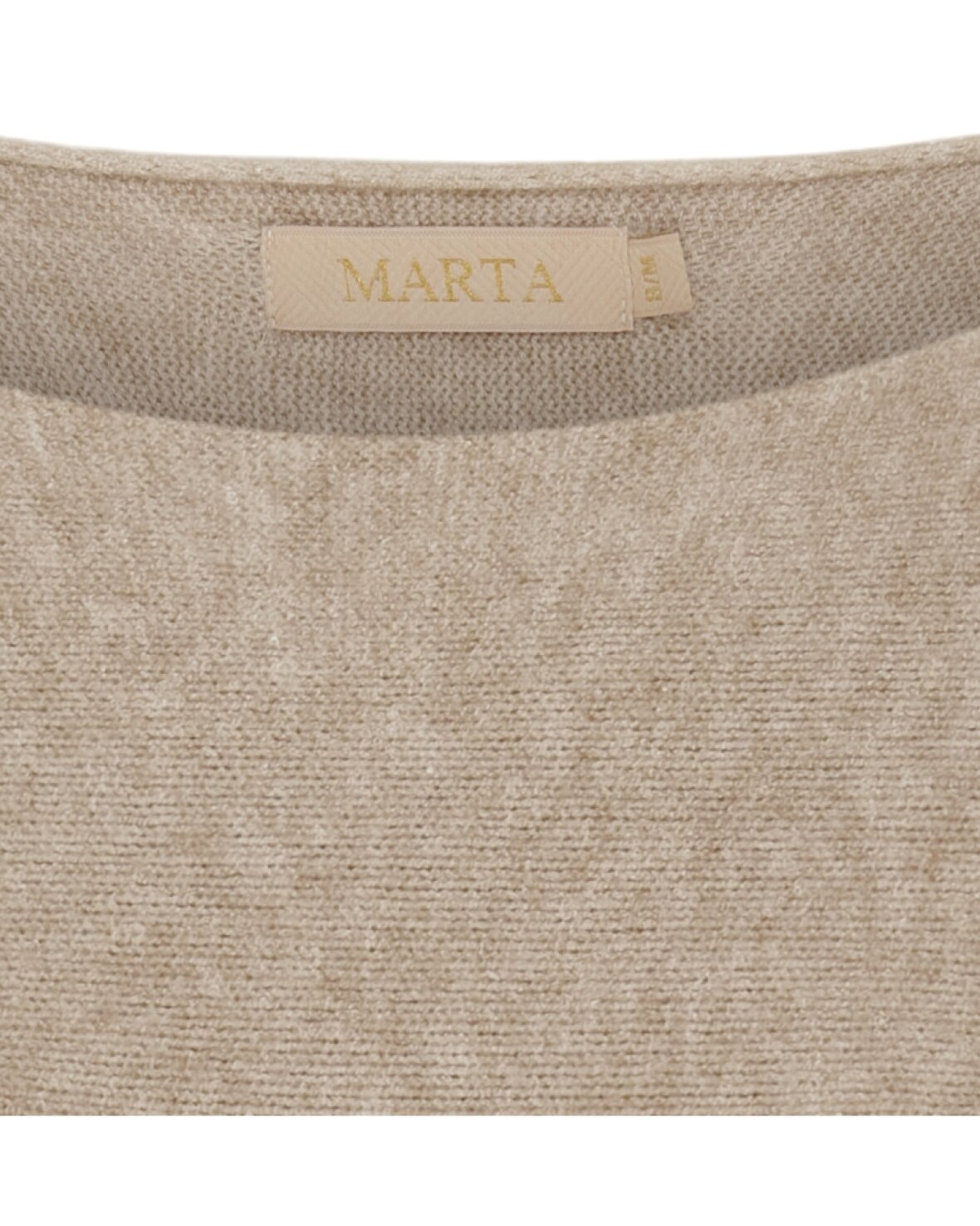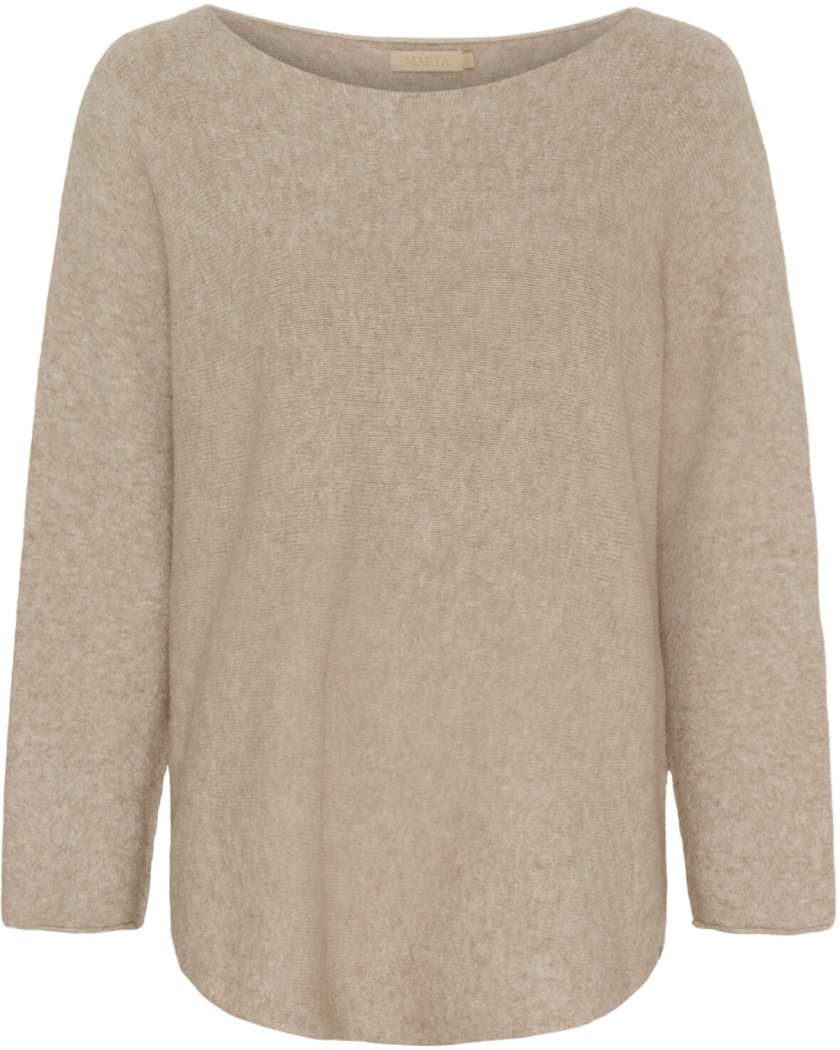 Strik 5001 fra Marta Du Chateau i medium beige. Lækker blød strik med rund lans, lange ærmer og fin længde på kroppen. Strikken runder let forneden.