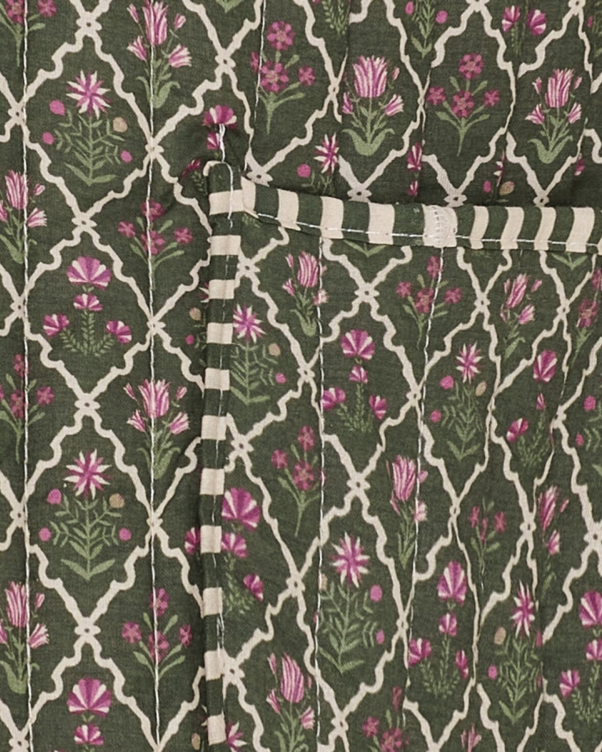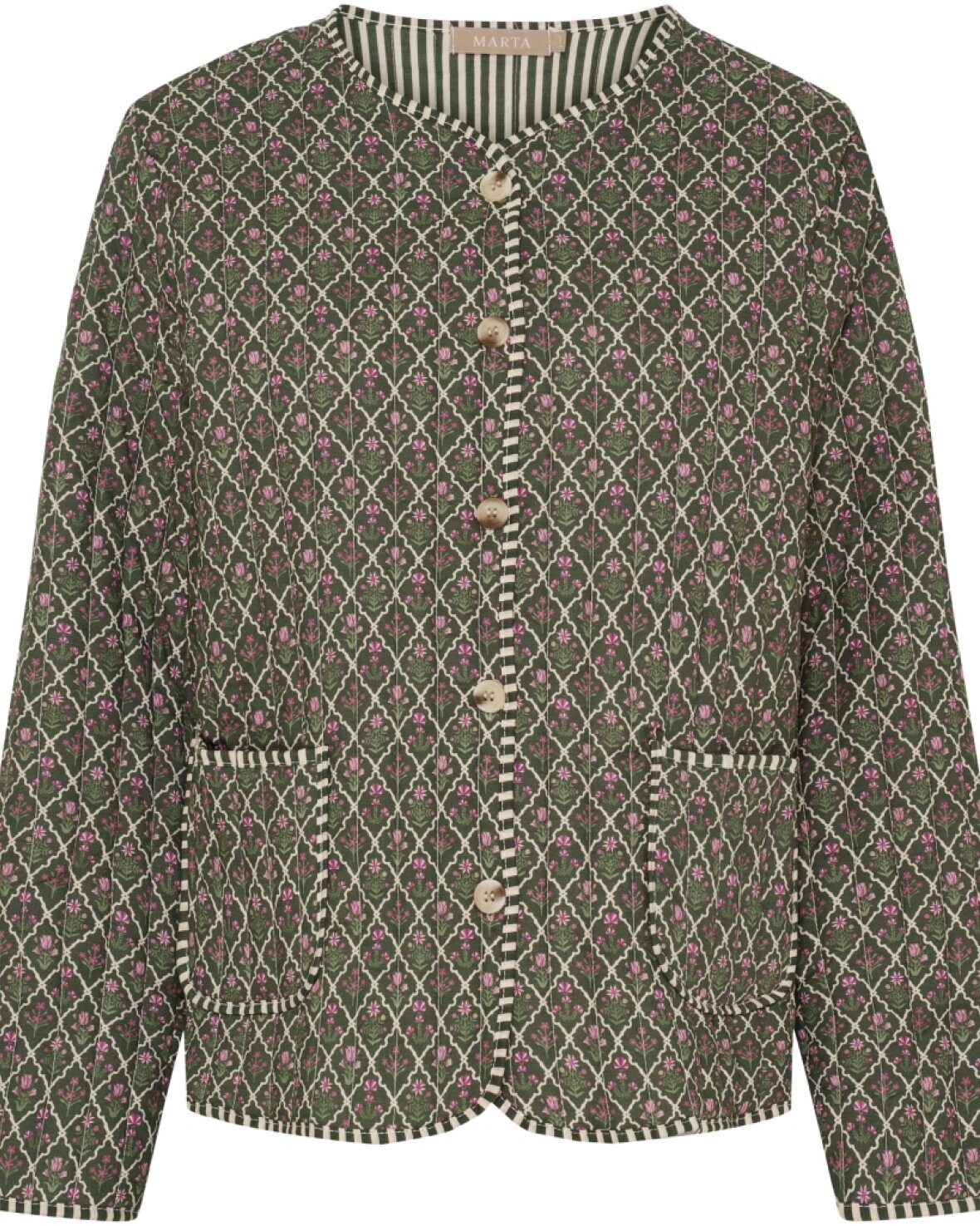 Jakke 86567 fra Marta Du Chateau i military. Skøn quiltet jakke med blød v-udskæring, knaplukning ned foran, lange ærmer og påsatte lommer foran.