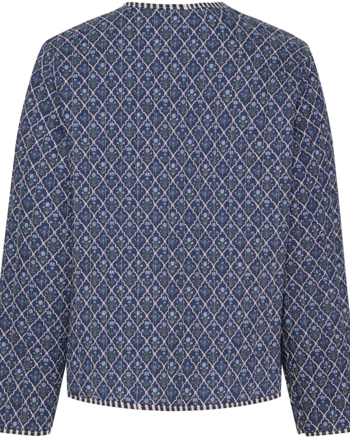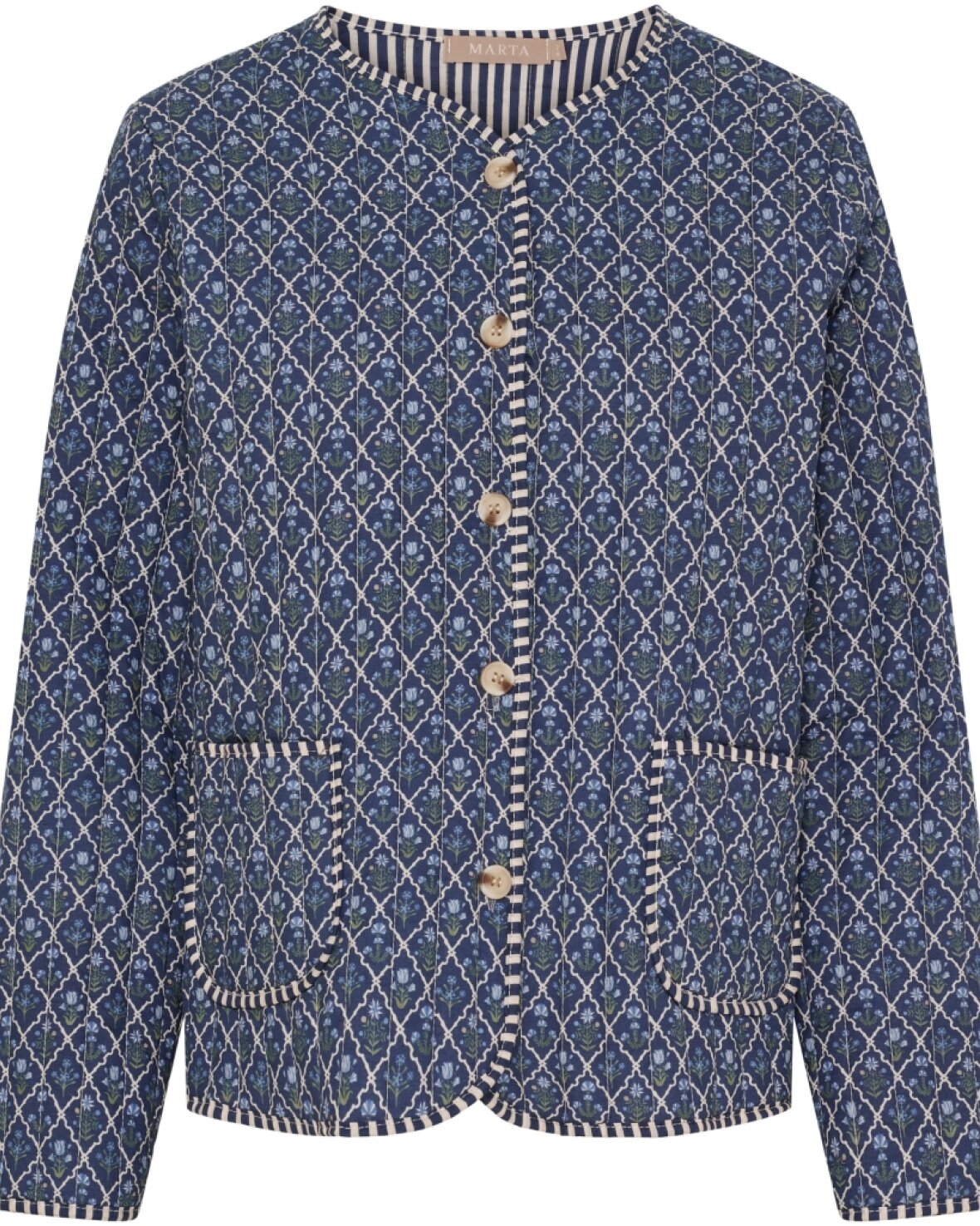 Jakke 86567 fra Marta Du Chateau i navy. Skøn quiltet jakke med blød v-udskæring, knaplukning ned foran, lange ærmer og påsatte lommer foran.