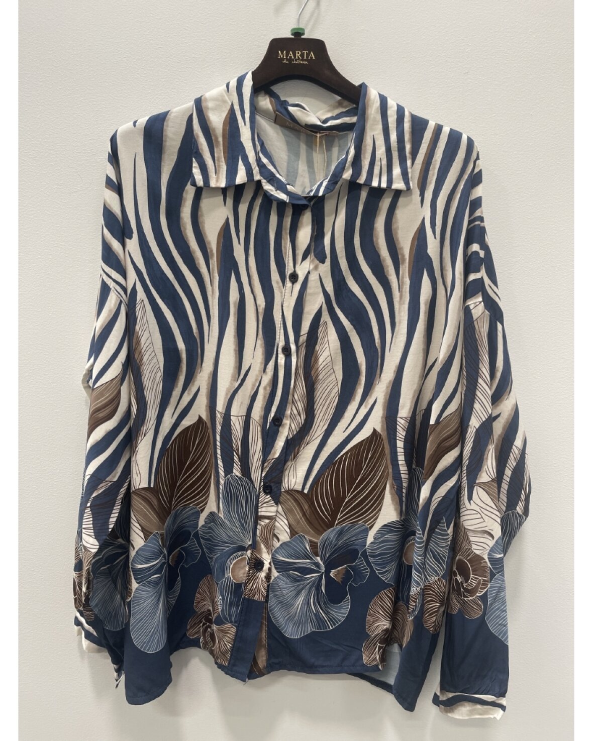 Skjorte 2615 fra Marta Du Chateau i jeans blå. Smuk skjorte med et lækkert mønster. Skjorten er gennemknappet, lar lange ærmer og klassisk krave.