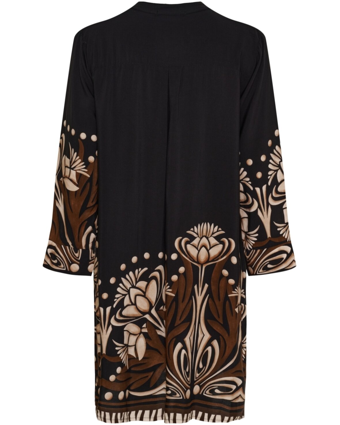 Kjole 2604B fra Marta Du Chateau i sort. Smuk kjole med kina krave og v-udskæring, kalvekrøs og knaplukning ned til under brystet. Kjolen er med 3/4 lange ærmer.