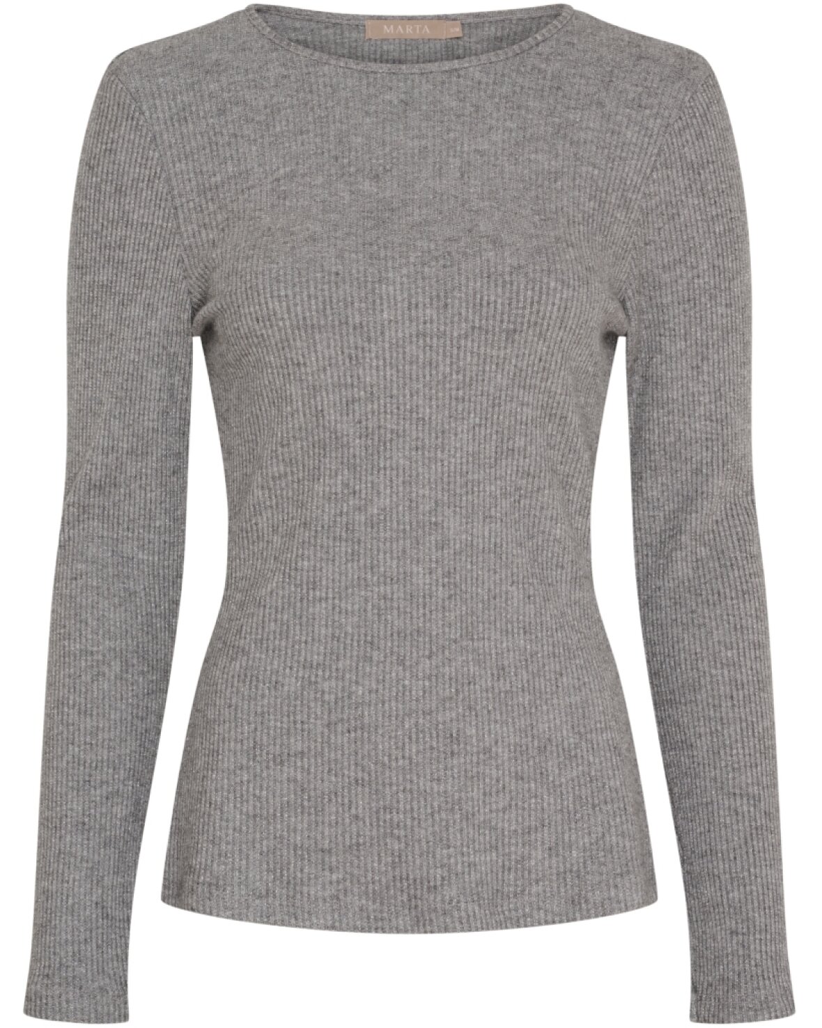 T-shirt 38915 fra Marta Du Chateau i grå. Lækker basis t-shirt med lange ærmer og let glimmer effekt.