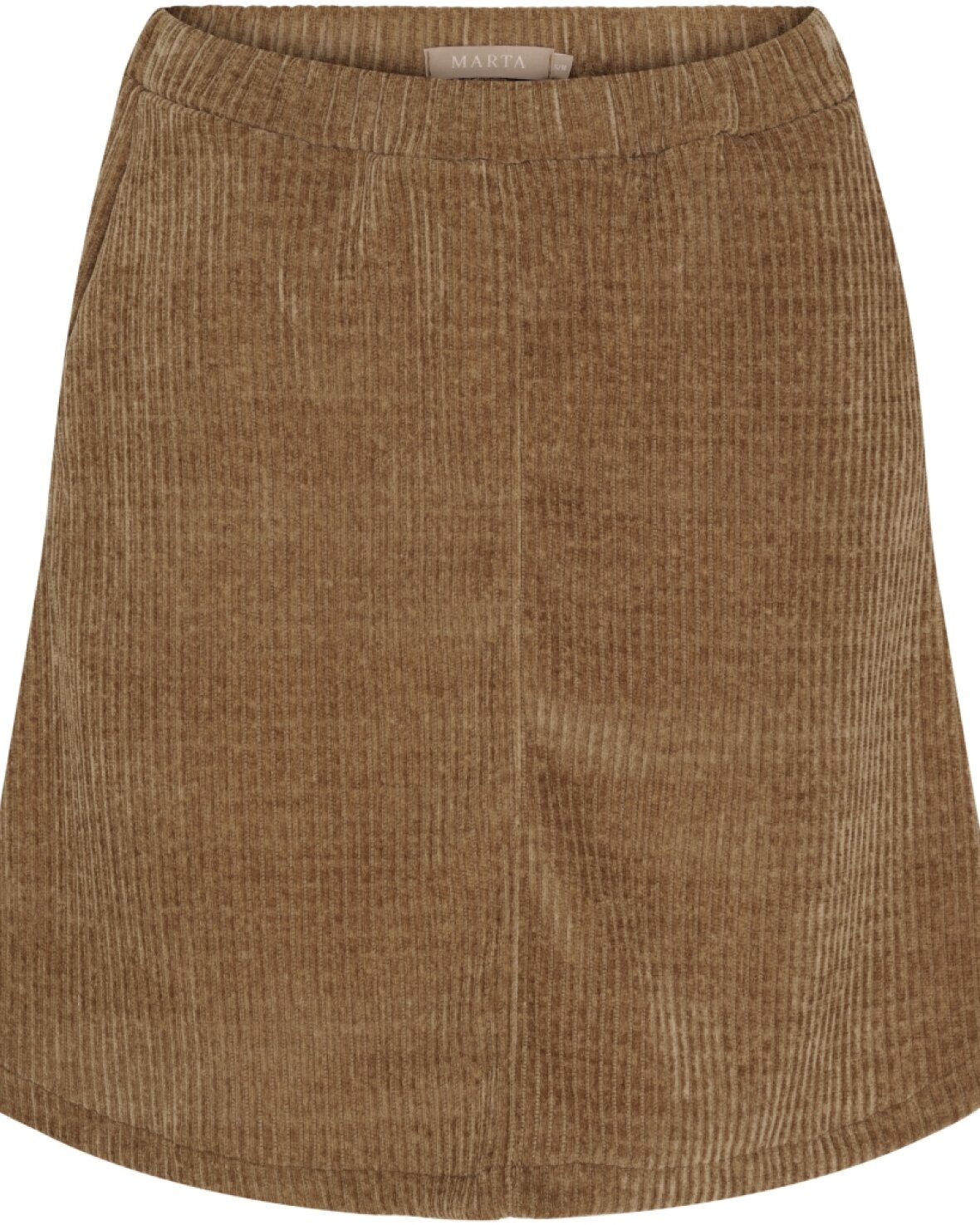 Nederdel 57089 fra Marta Du Chateau i camel fløjl. Lækker og brød nederdel i den brede fløjl, elastik i livet og skrålommer i siden.