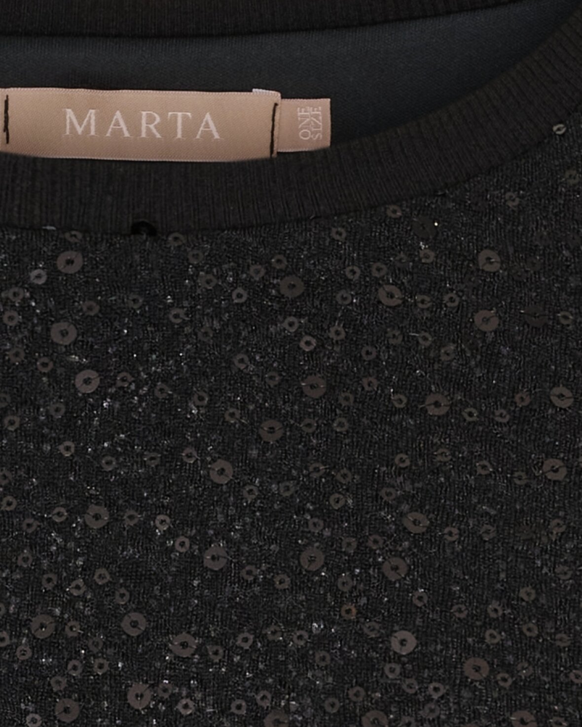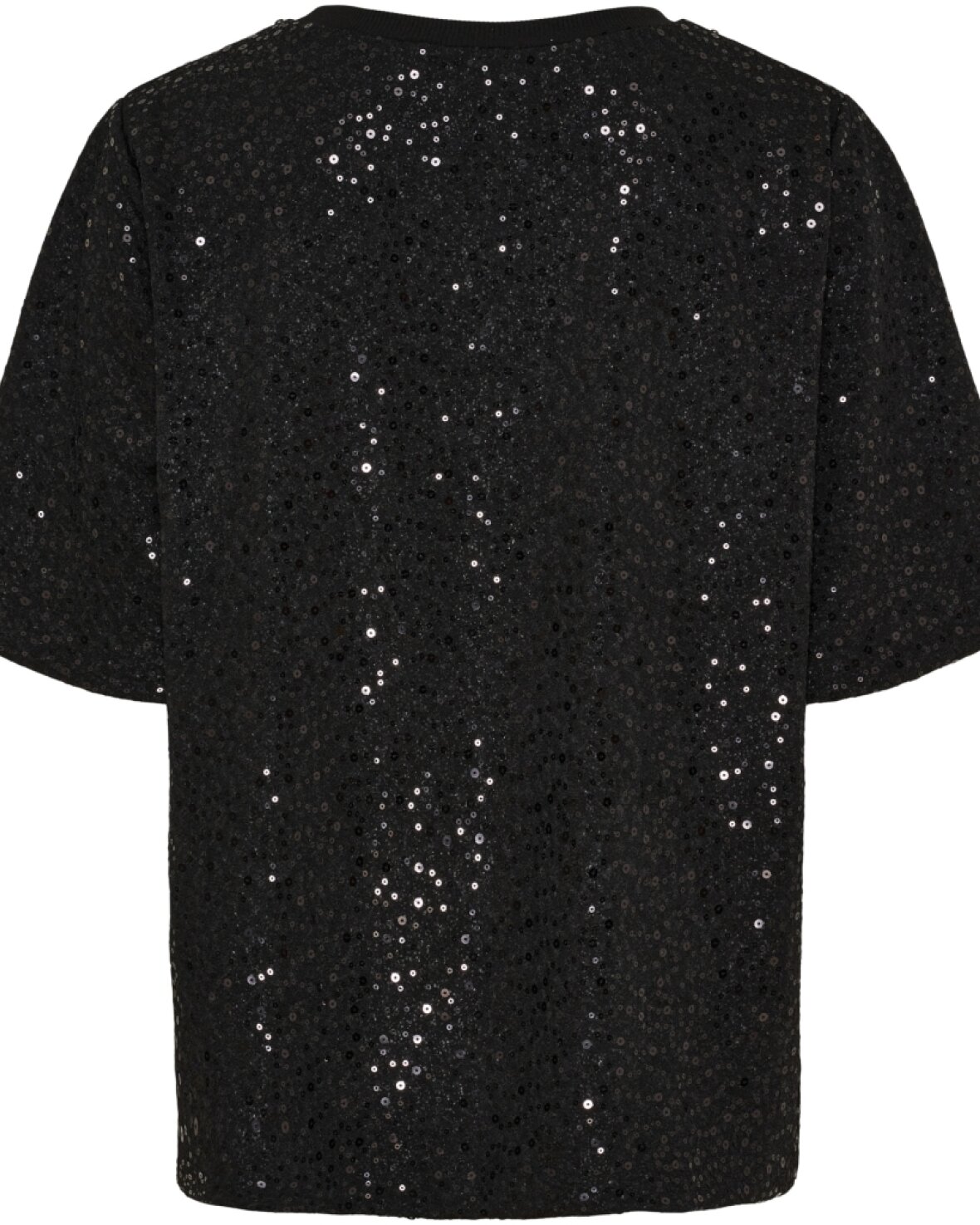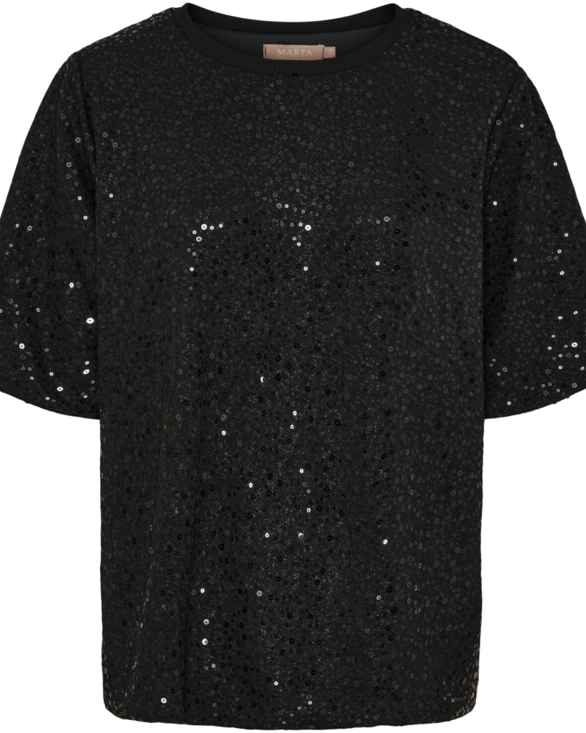 Bluse 7693 fra Marta Du Chateau i sort med palietter. Fin t-shirt med rund hals, kort ærme og løs pasform.