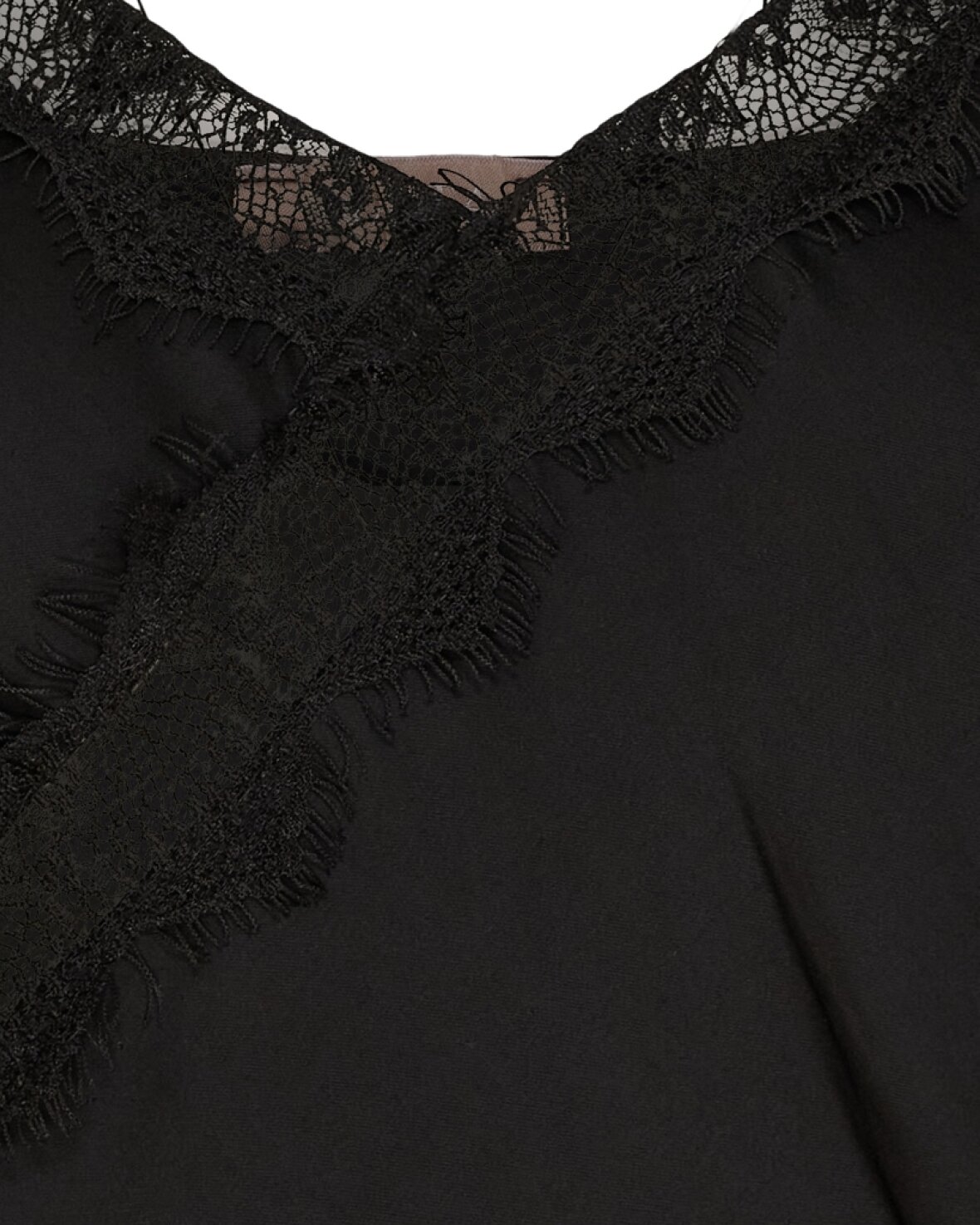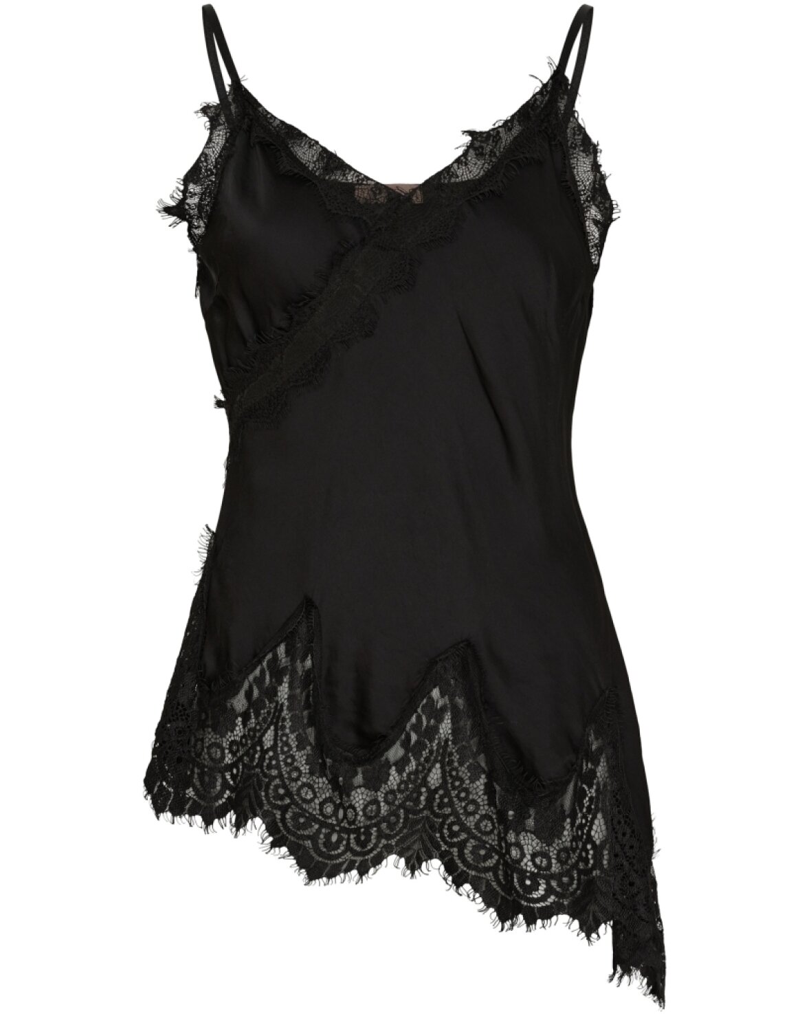 Top 23408 fra Marta Du Chateau i sort. Sød blondetop med tynde regulerbare stropper og asymetrisk i bunden.
