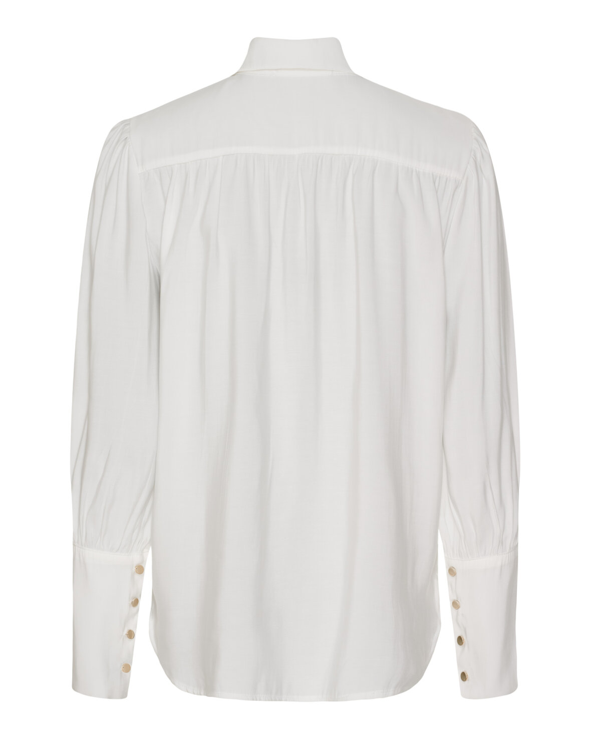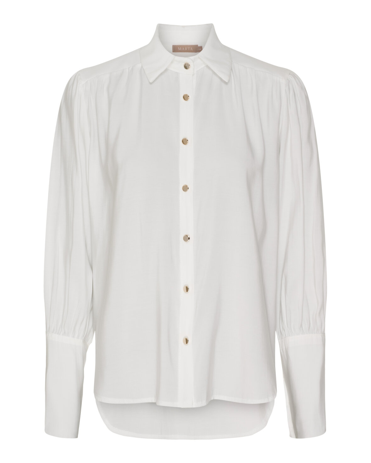 Skjorte 58725 fra Marta Du Chateau i hvid. Smuk skjorte med klassisk krave, gennemknappet med smukke guld knapper, lange ærmer smuk flot slutning og et flot fald i selv skjorten.