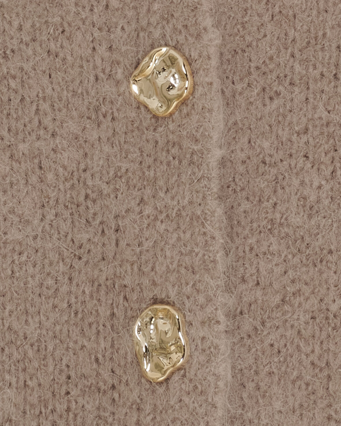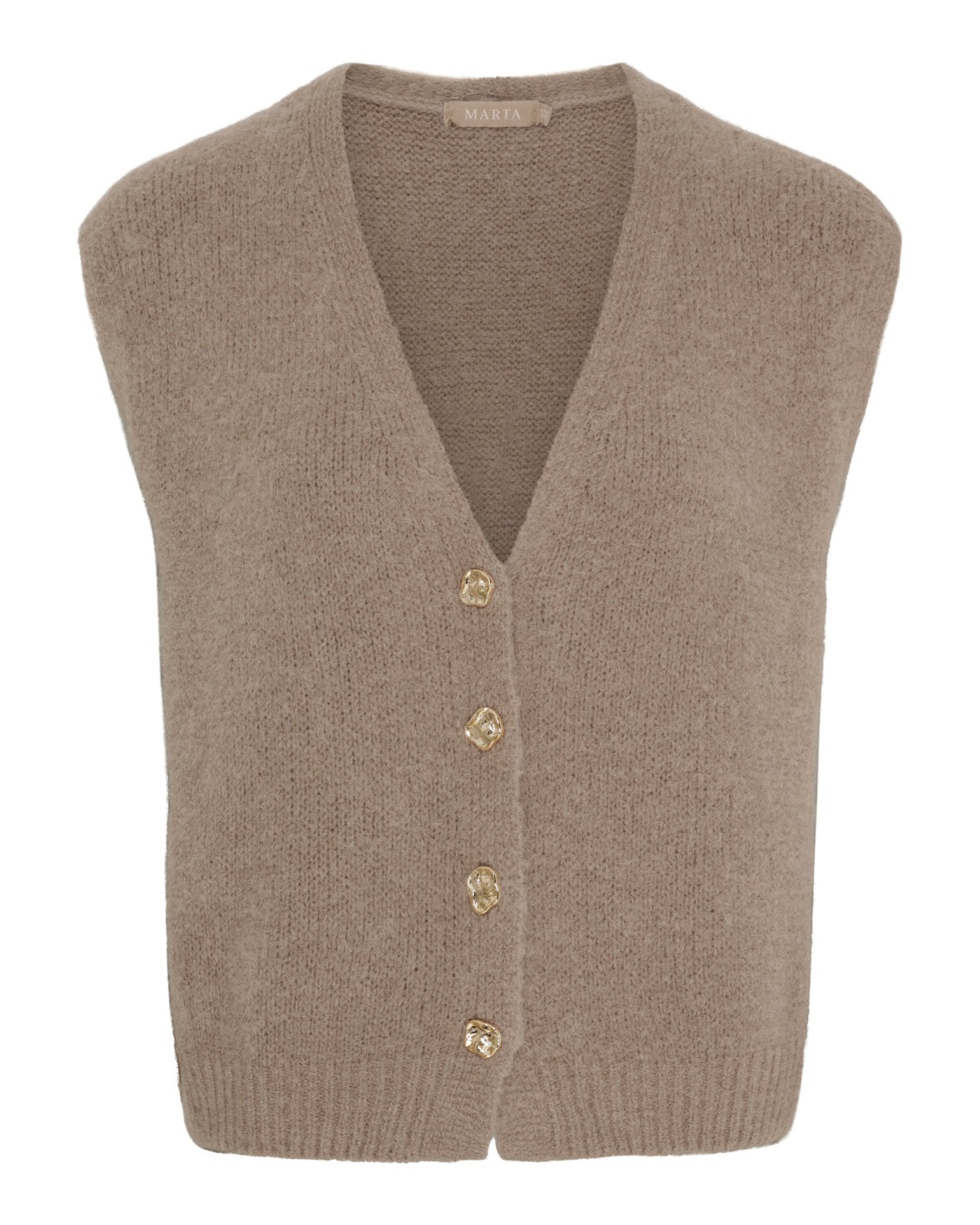 Vest 5215 fra Marta Du Chateau i fango. Lækker strikket vest med udslæring og smarte knapper ned foran.