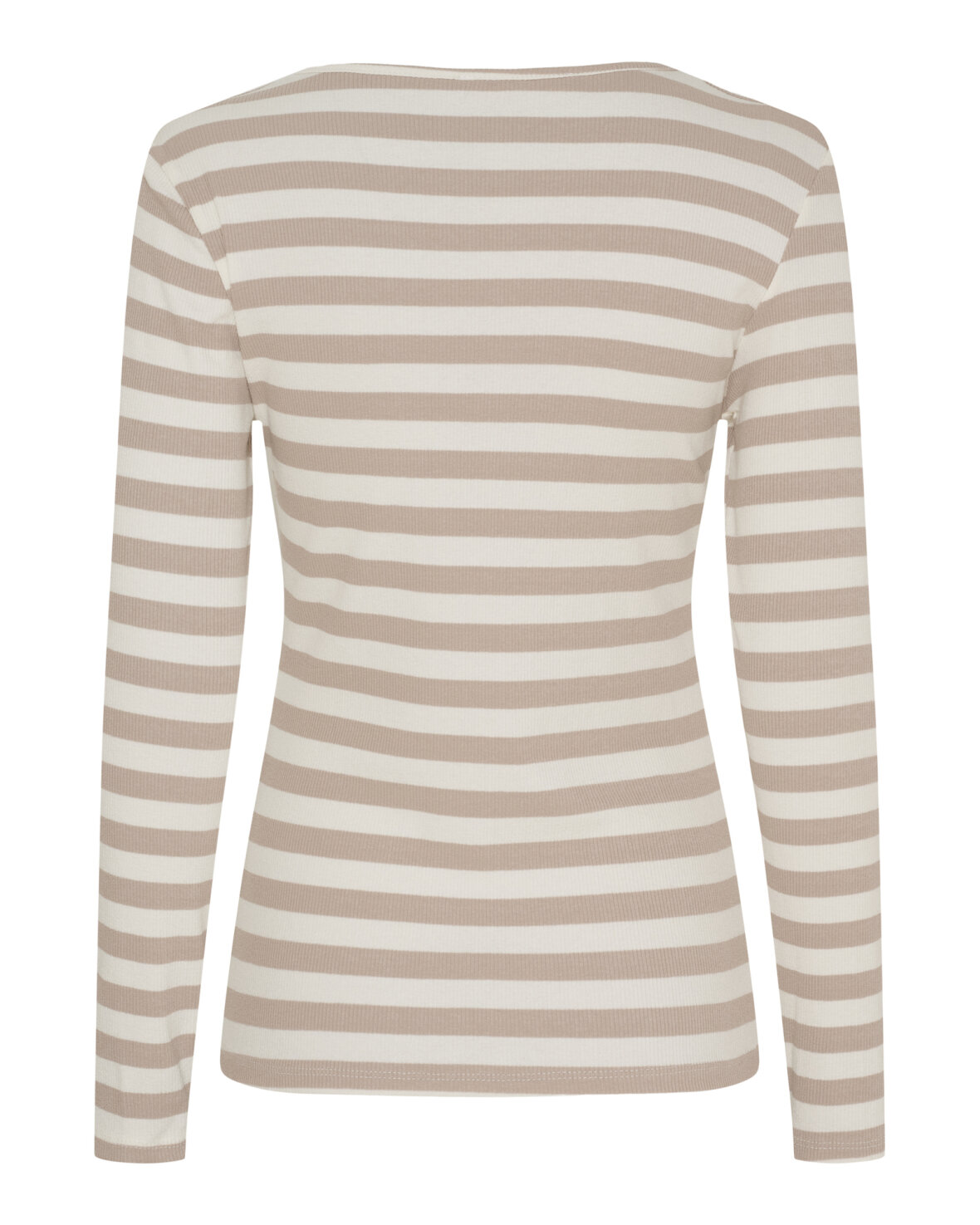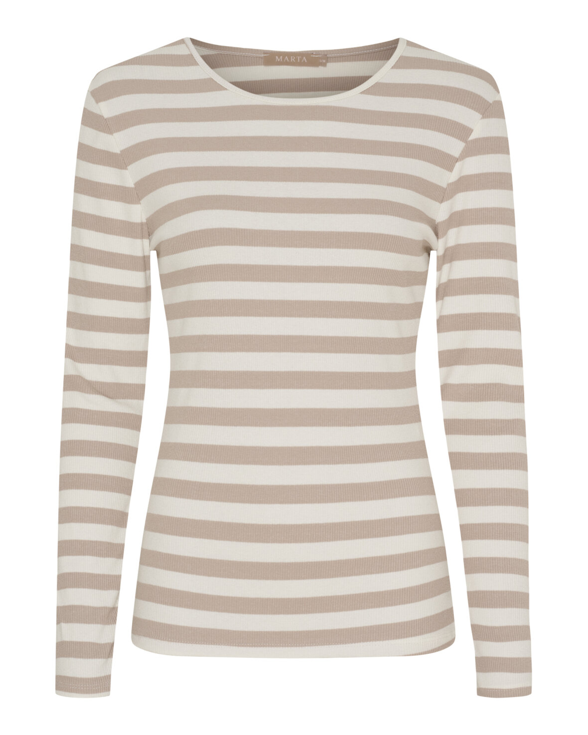 T-shirt 7702 fra Marta Du Chateau i beige. Skøn basis t-shirt med rund hals, langt ærme og tæt pasform.