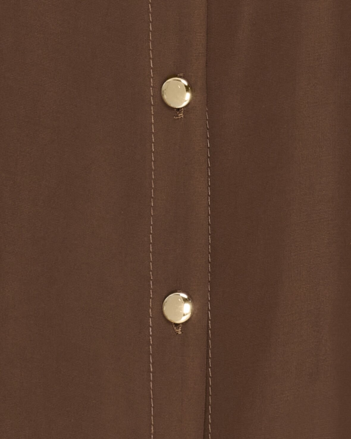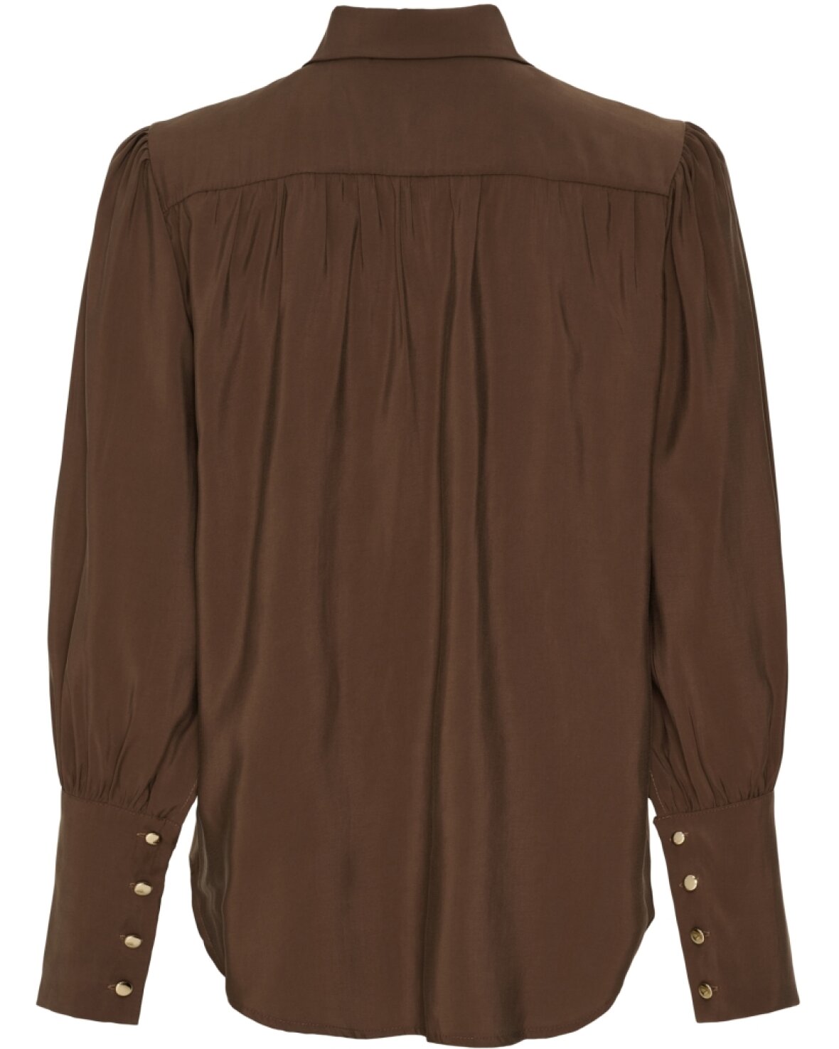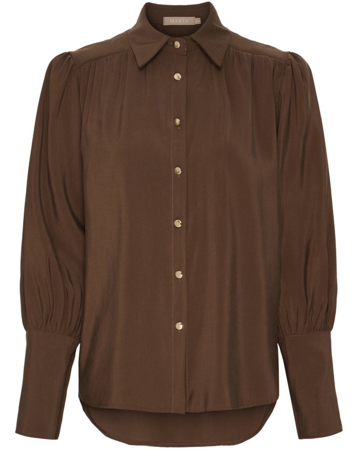 Skjorte 58725 fra Marta Du Chateau i brun. Smuk skjorte med klassisk krave, gennemknappet med smukke guld knapper, lange ærmer smuk flot slutning og et flot fald i selv skjorten.