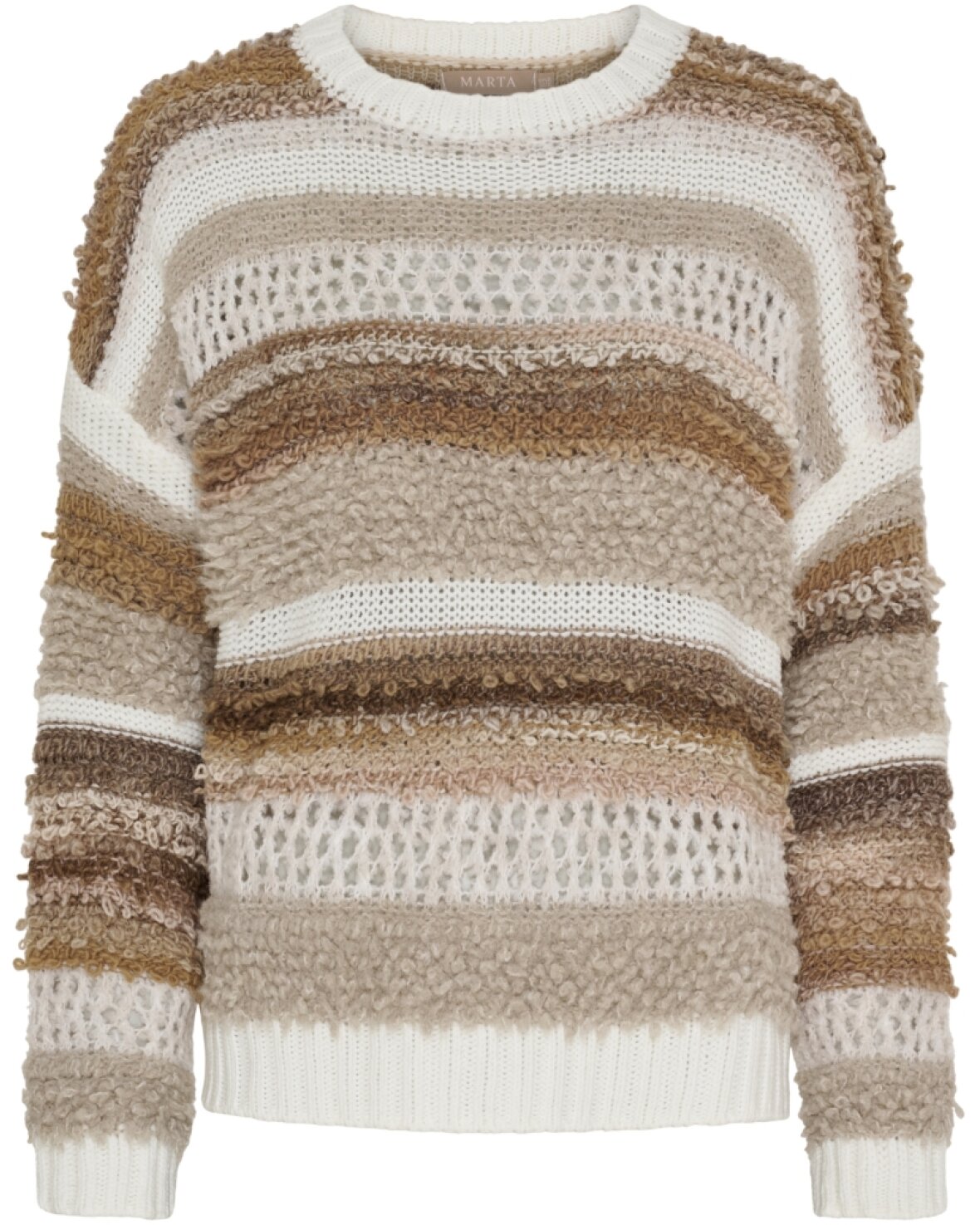 Strik 25430 fra Marta Du Chateau i beige/karamel. Flotteste strik med rund hals og lange ærmer.