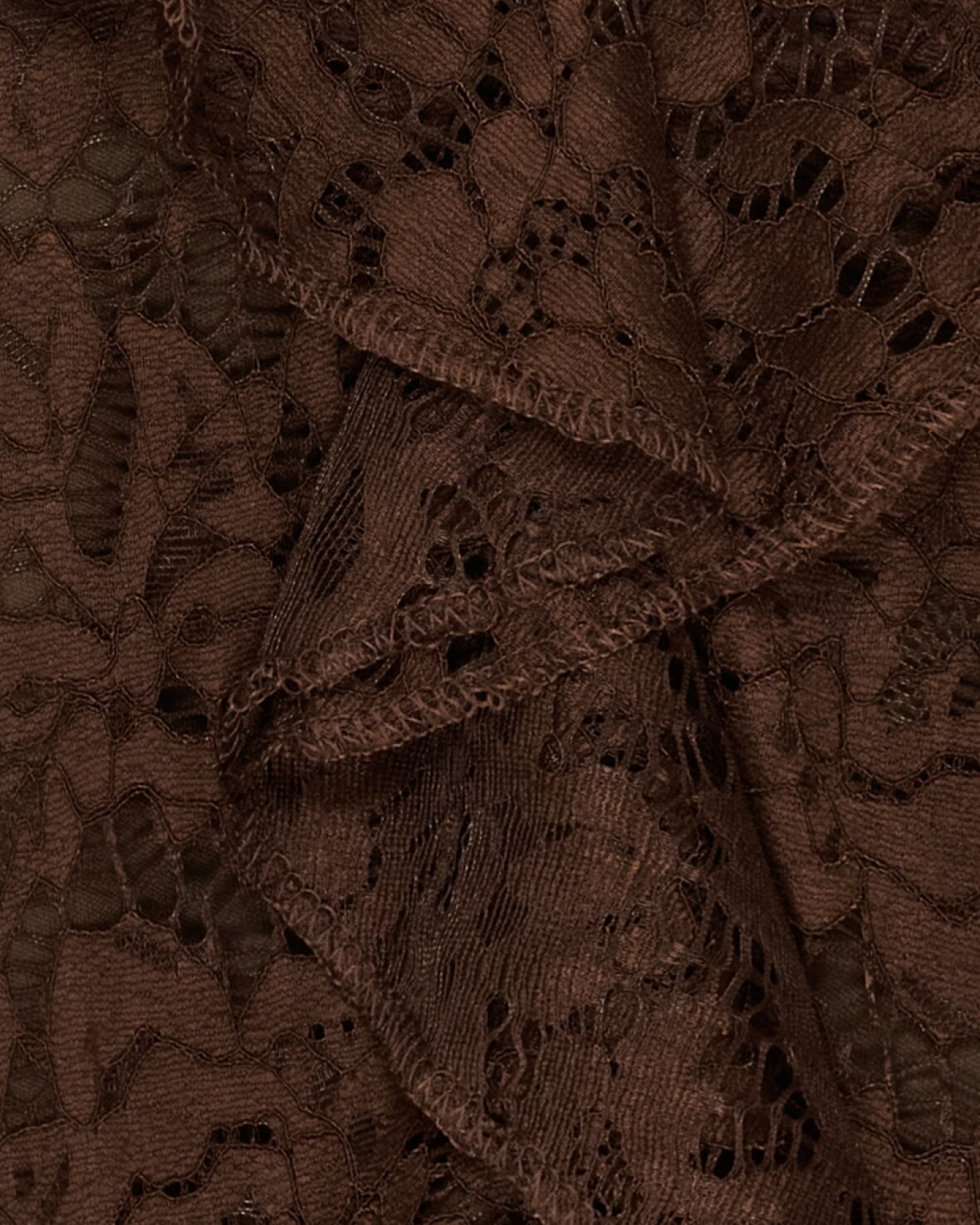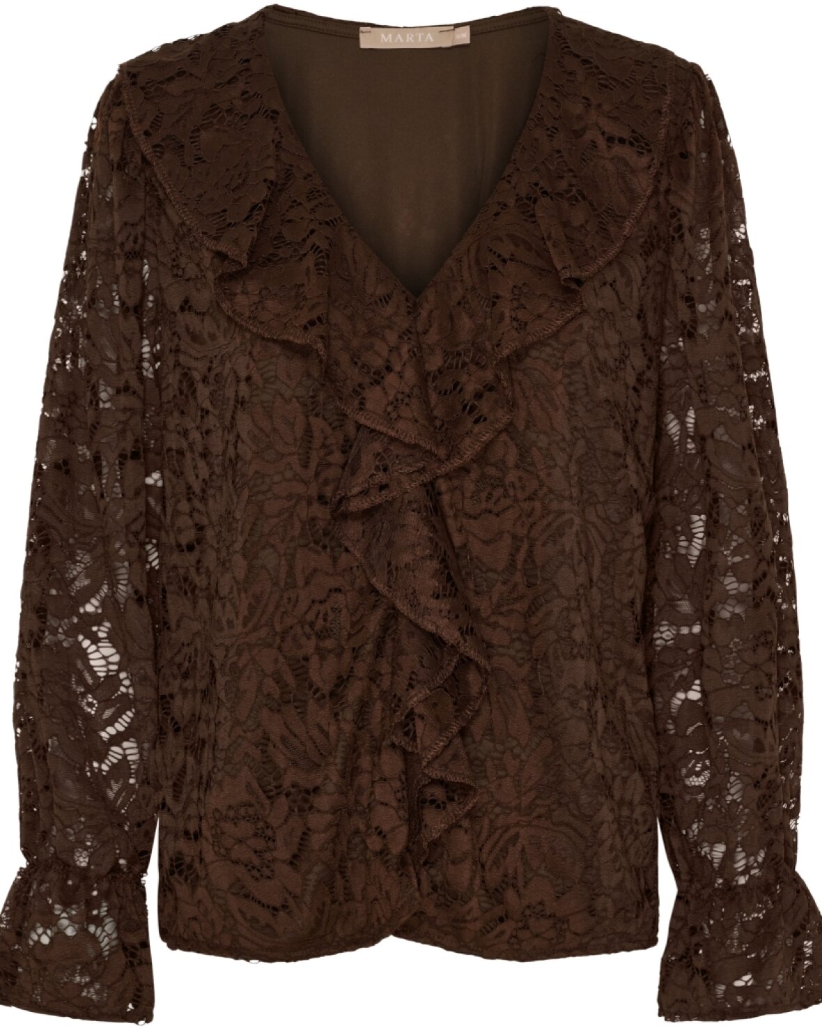 Bluse 7735 fra Marta Du Chateau i brun blonde. Smuk bluse med v-udskæring, kalvekrøs og lange ærmer. Ærmerne er gennemsigtige hvor kroppen er foret.