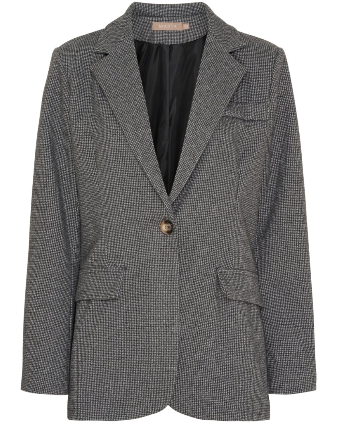 Blazer 15502-1 fra Marta Du Chateau i grå småtern. Smart let oversize blazer i let børstet kvalitet. Skøn og blød.