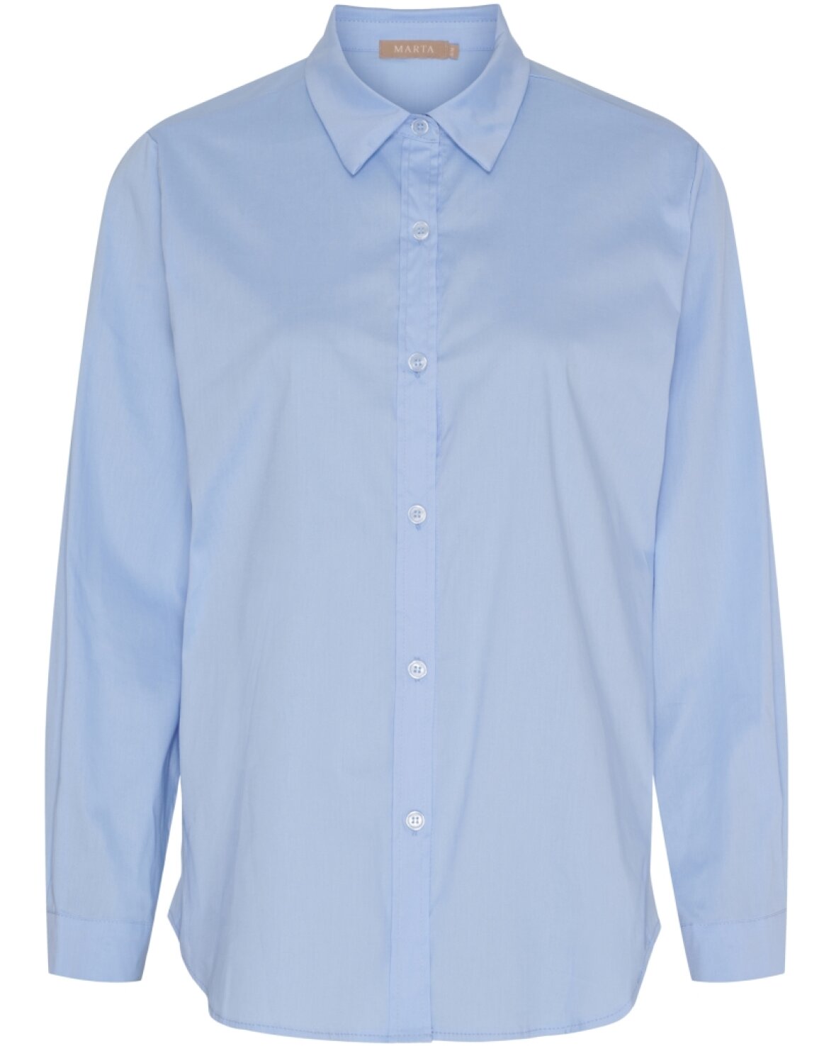Skjorte 85700 fra Marta Du Chateau i lyseblå. Klassisk hvid skjorte med krave, gennemknapning og lange ærmer. God under strik eller klassisk under en blazer.