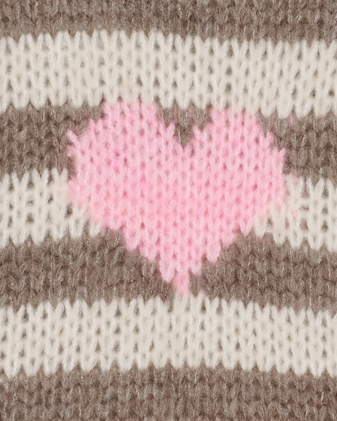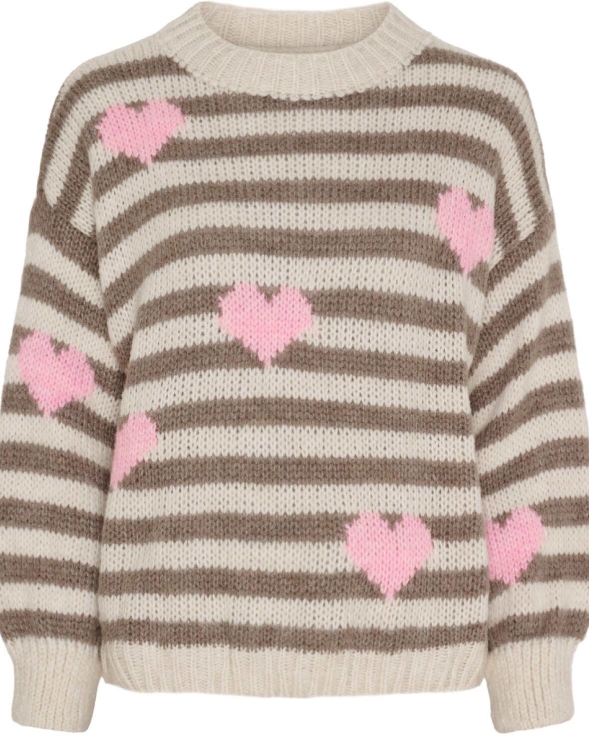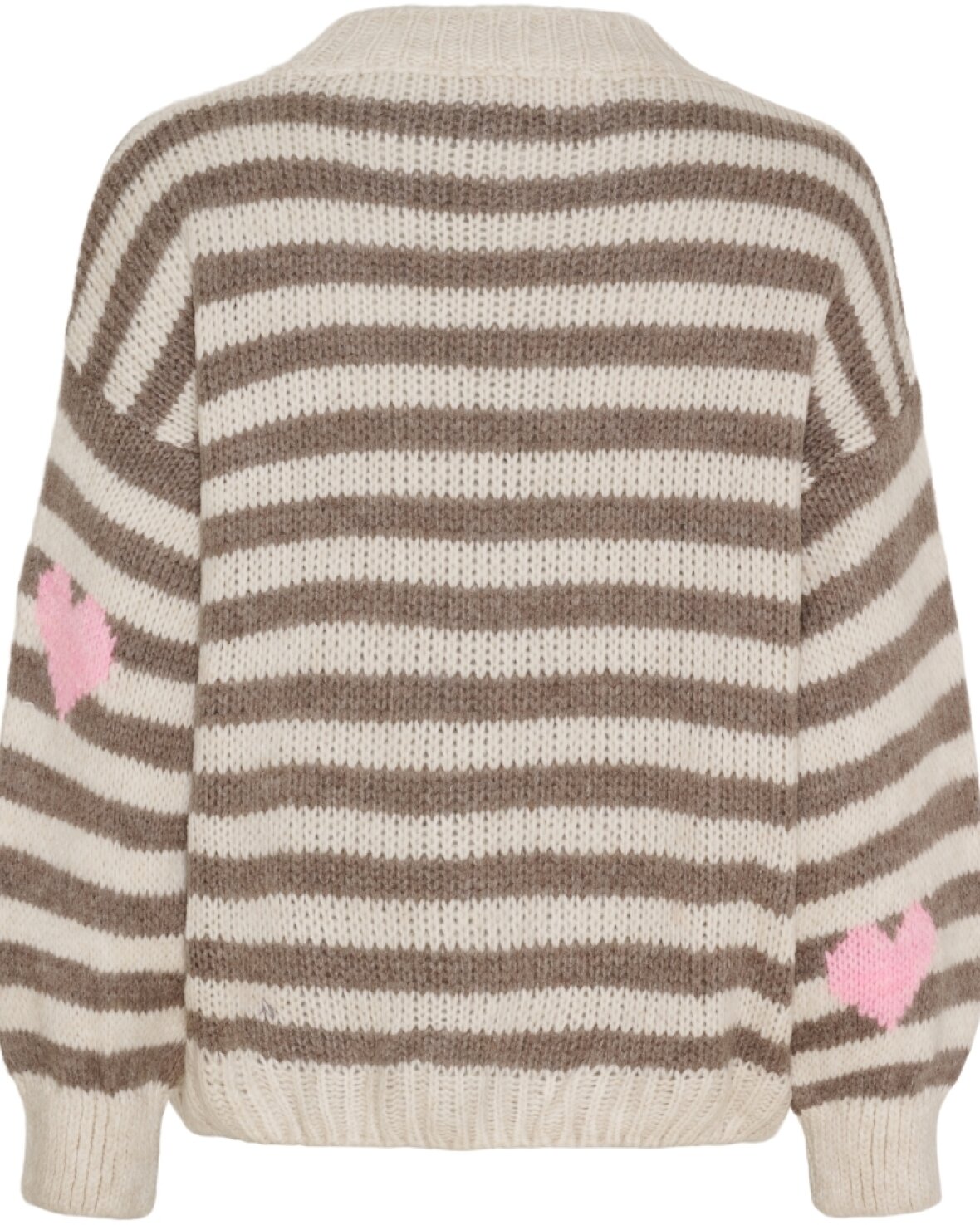 Strik 6508 fra Marta Du Chateau i beige med striber og fine hjerter i rosa. Lækker strik med rund hals og lange ærmer.