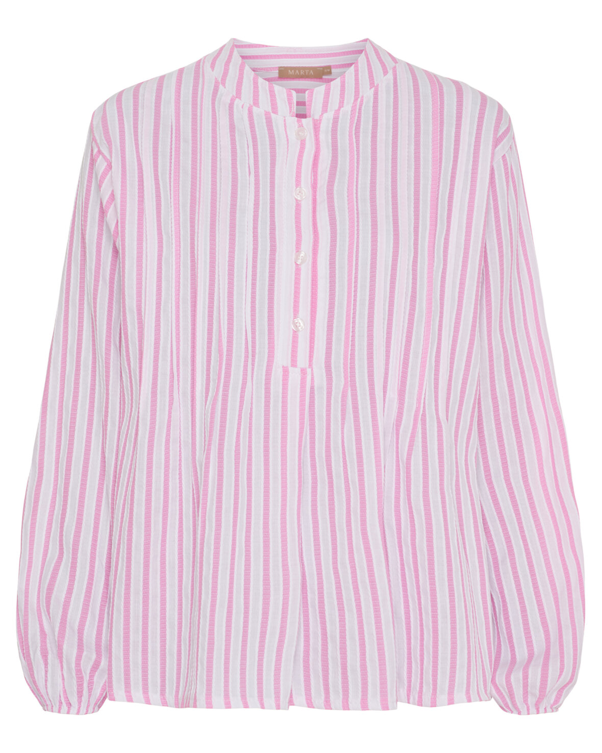Skjorte 7912 fra Marta Du Chateau i pink. Skøn skjorte med kina krave, knaplukning ned til under brystet. let A facon og falder flot på.