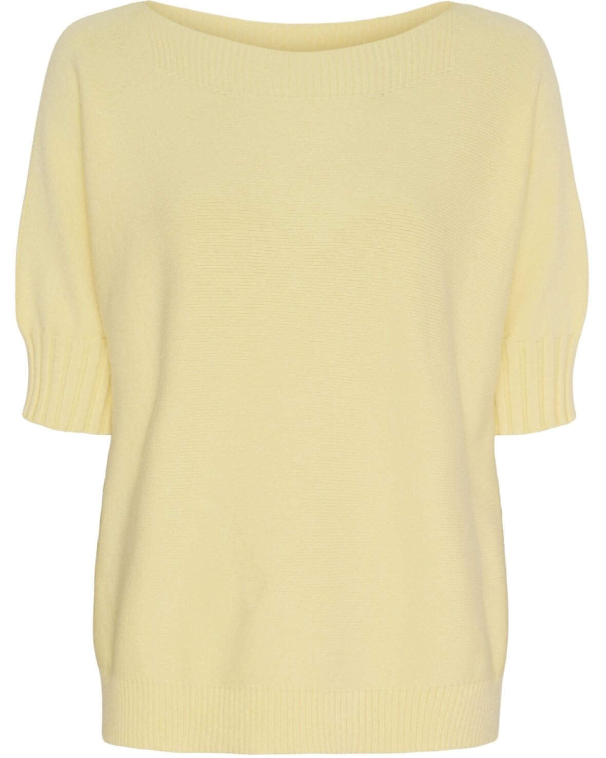 Strik 9511 fra Marta Du Chateau i gul. Lækker strik med båd hals, kort ærme og skøn at have på.