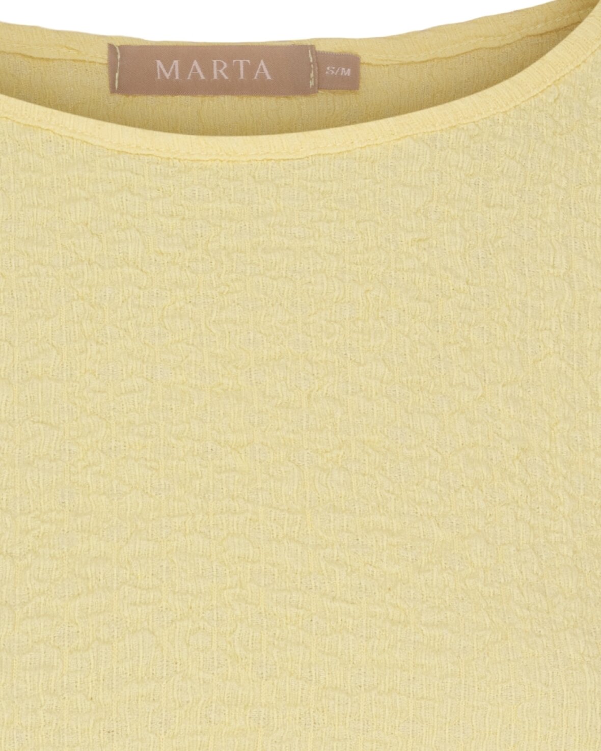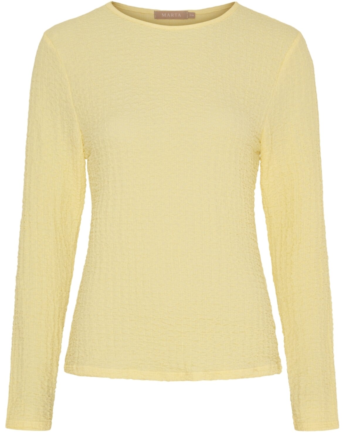 T-shirt 38915 fra Marta Du Chateau i gul. Skøn langærmet t-shirt i "bæk og bælge" kvalitet. T-shirt'en er m,ed rund hals og lange ærmer. Skøn under alt.