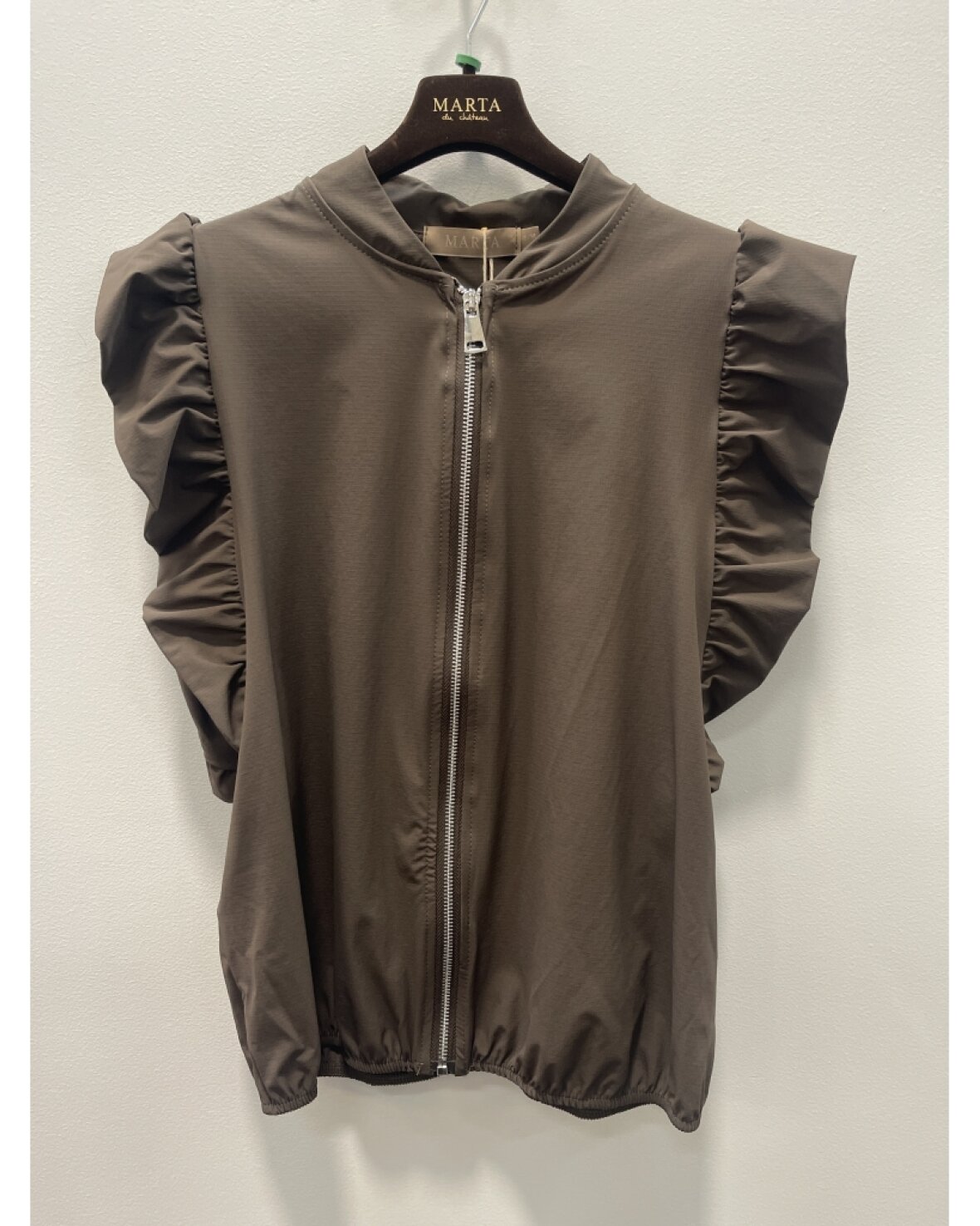Vest 58876 fra Marta Du Chateau i coffee. Let og lækker vest i "faldskærms-kvalitet" med lynlås og flæse ved ærmegab.