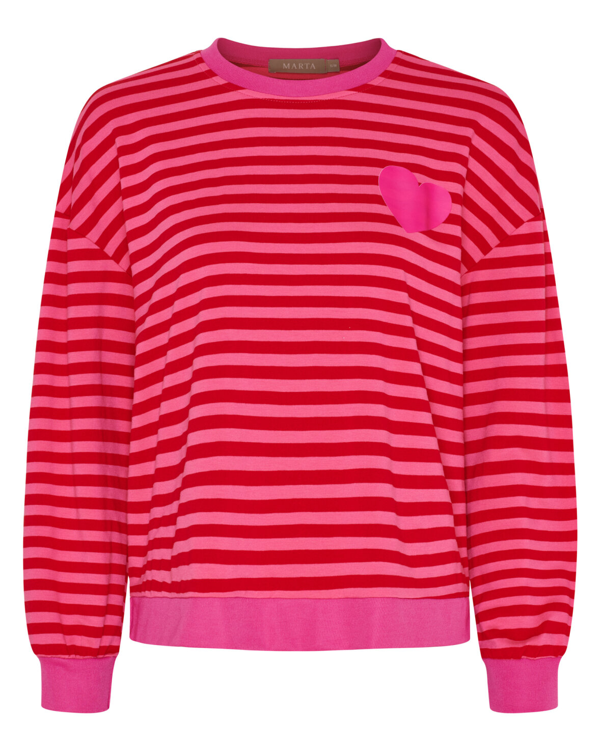 T-shirt 58903 fra Marta Du Chateau i fuxia med pink. Dejlig frisk bluse i striber med et skønt farvevalg. Blusen har rund hals og lange ærmer.