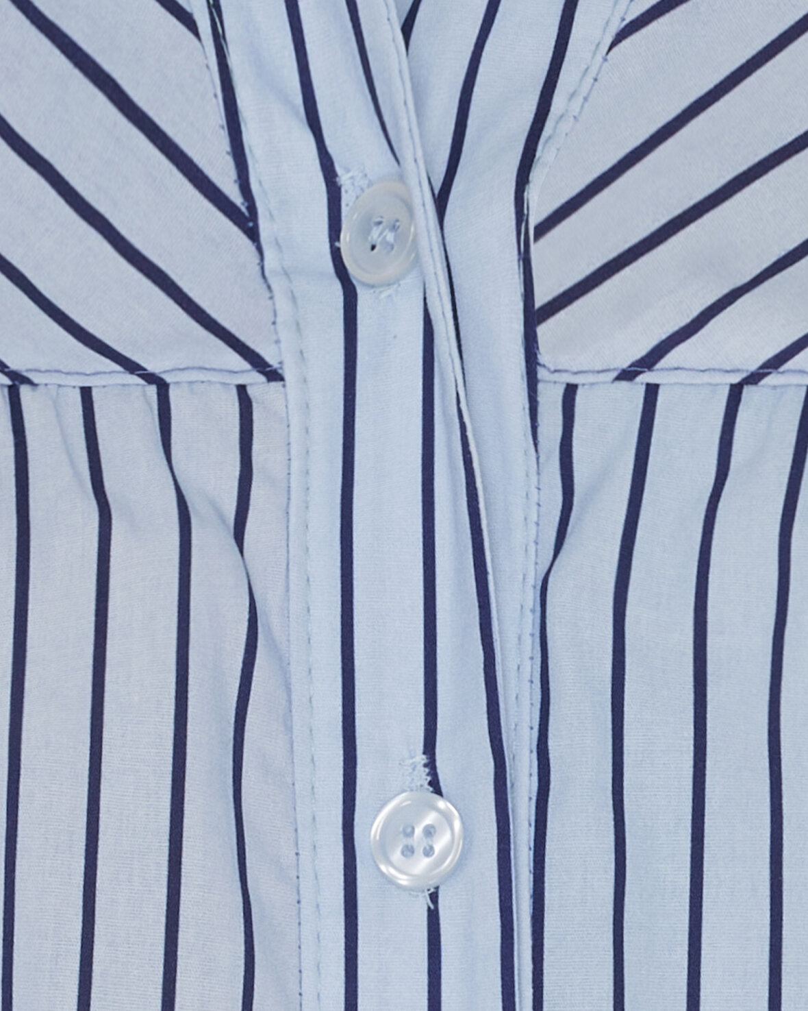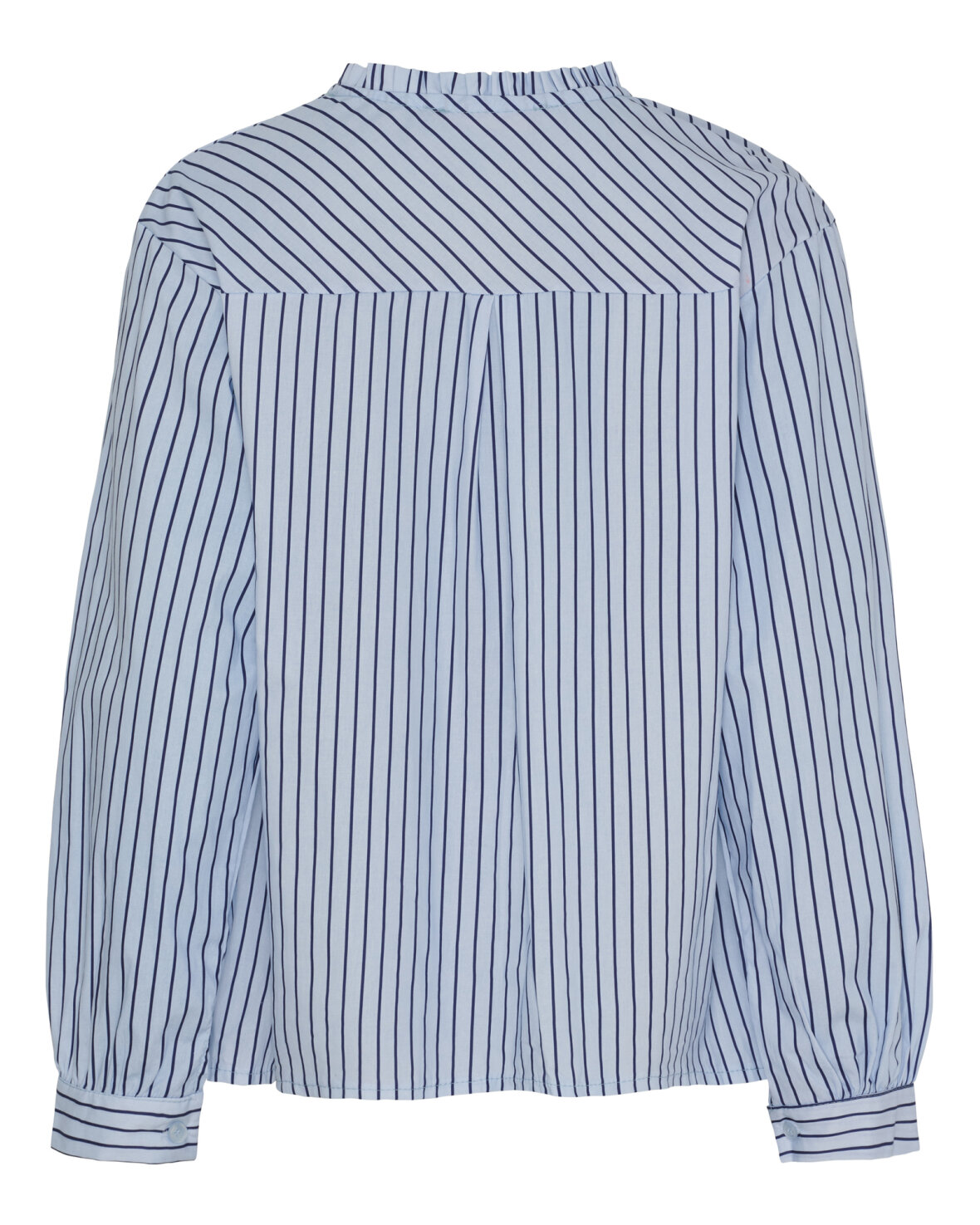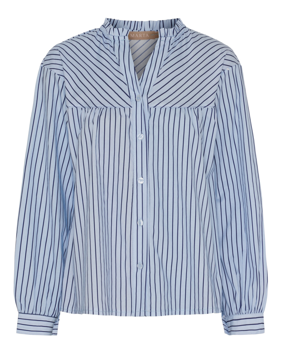 Skjorte 7881 fra Marta Du Chateau blå. Fineste skjorte med let flæse i halsen og v-udskæring. Skjorten er gennemknappet og har lange ærmer.