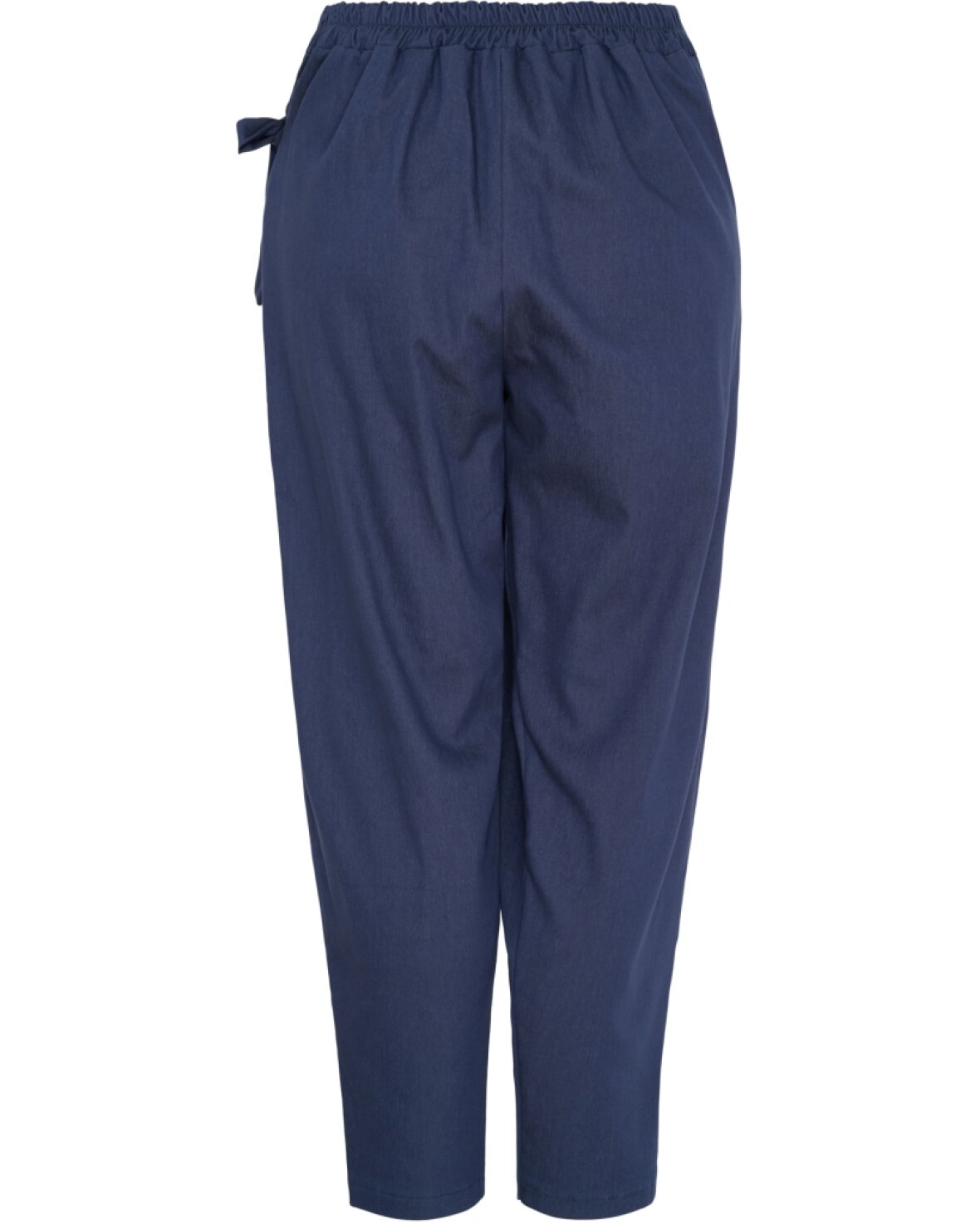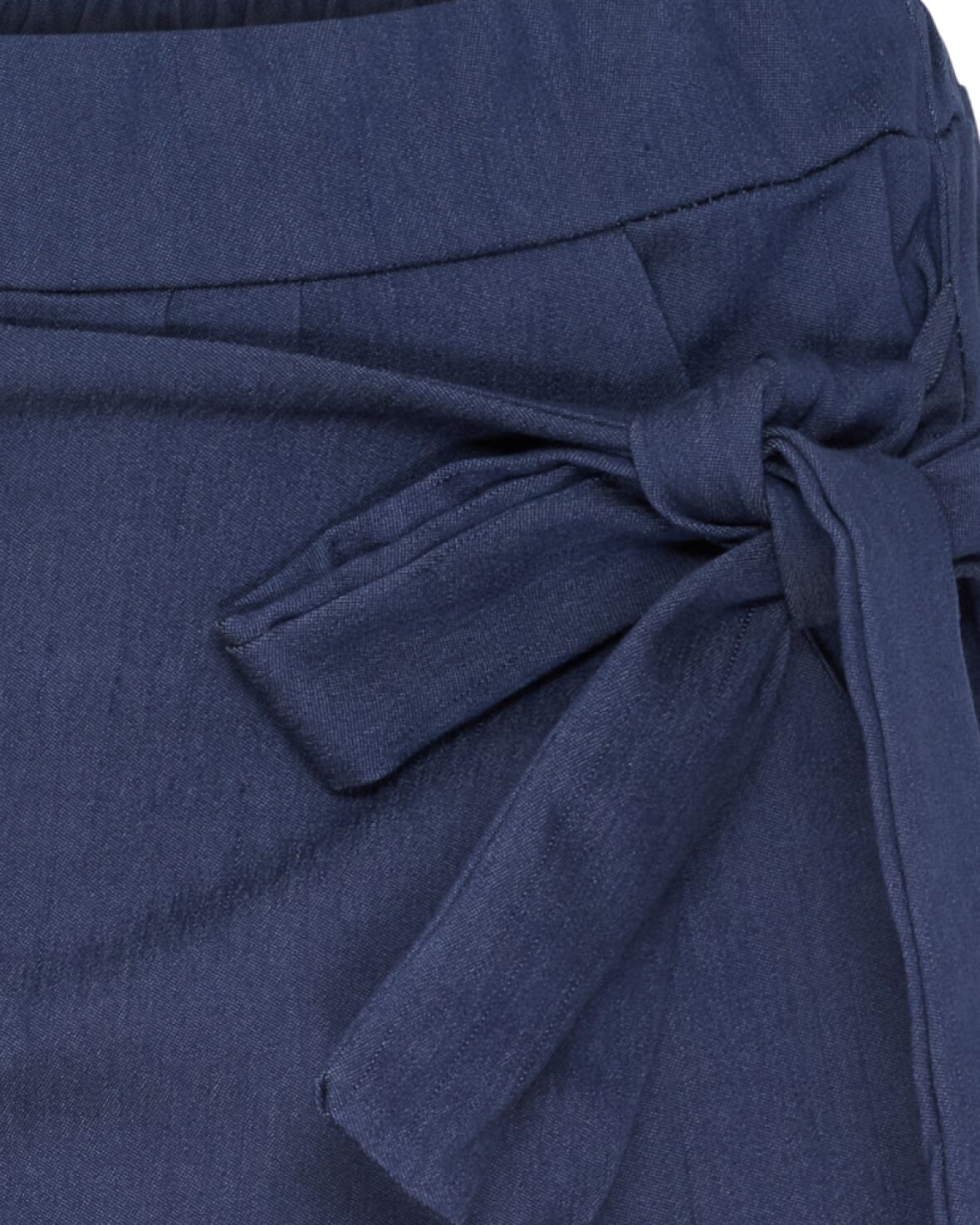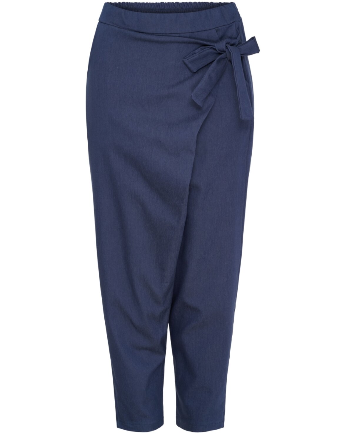 Buks 56618 fra Marta Du Chateau i mørk blå. Super cool buks med bindedetalje i siden. Fast linning foran og elastik bagpå. Buksen har skrålommer i siden. Smart buks!